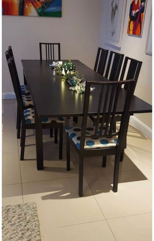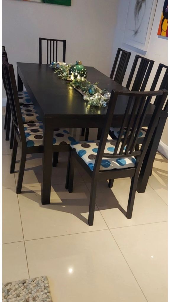 IKEA Dining Table & 8 Chairs Dark Wood