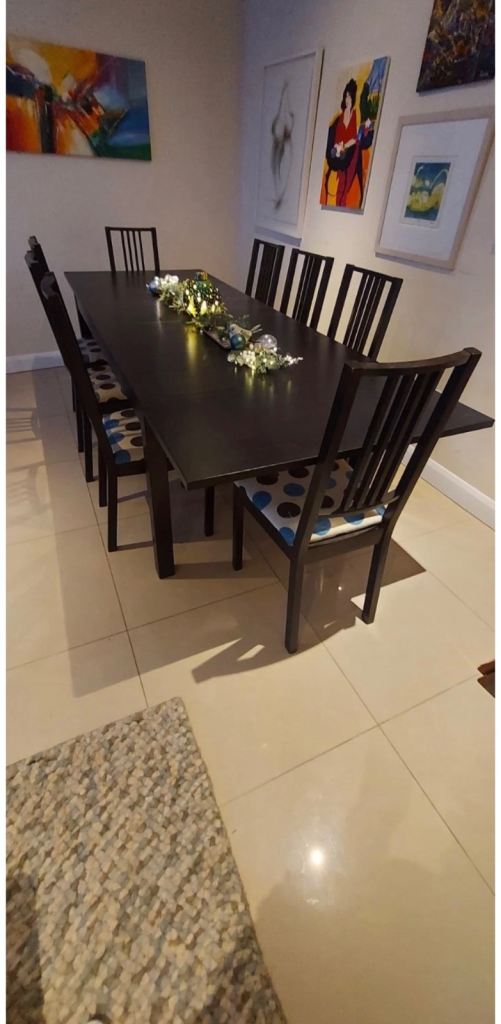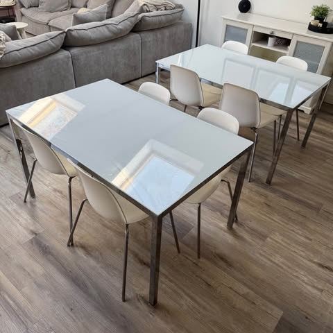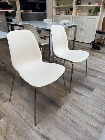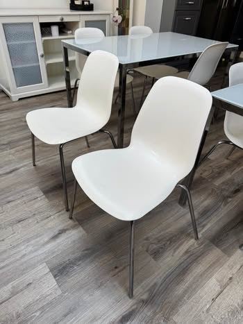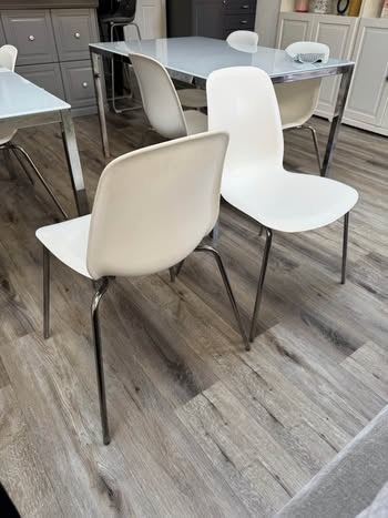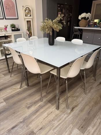 IKEA glass top white table with silver legs & 4 chairs . Approx 125cm x 85 cm . Collection cherryhinton.