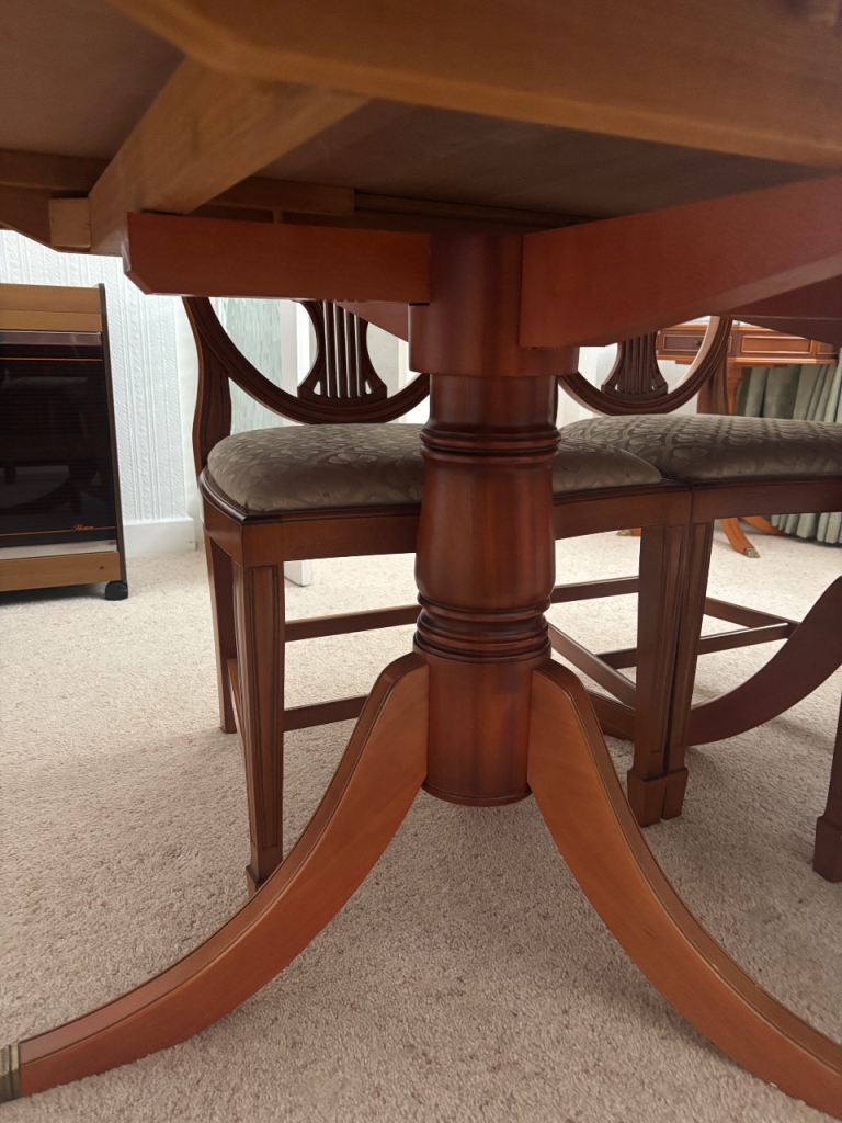 Posting for 1+ yearsImmaculate solid wood extendable dining room table and chairs