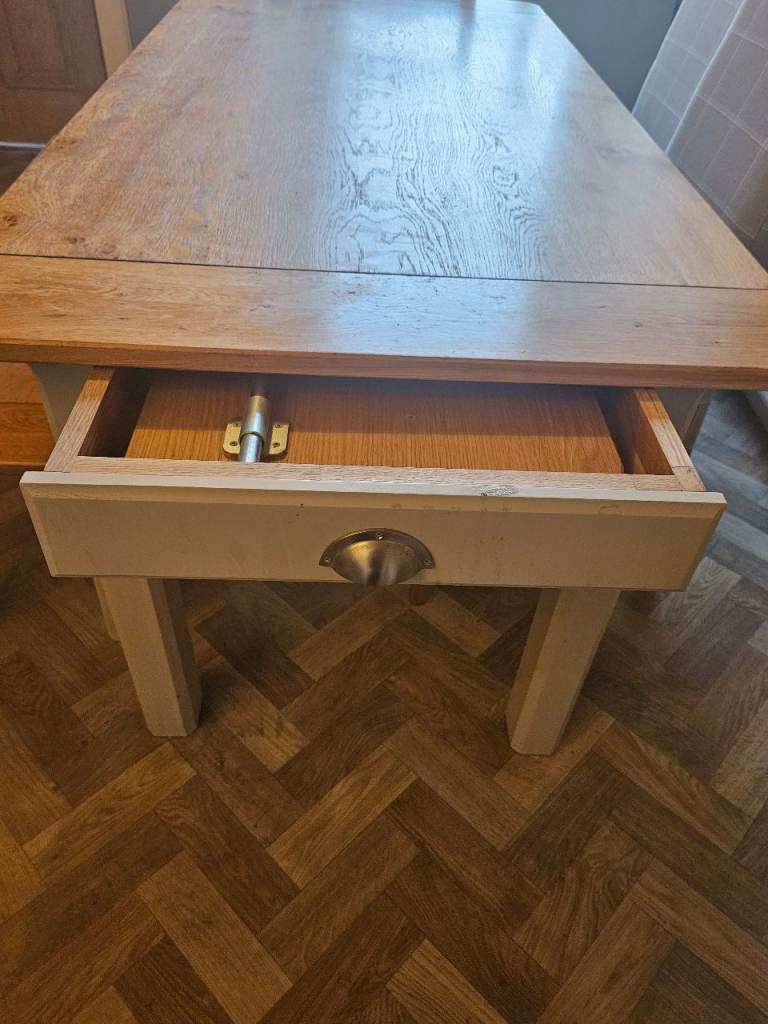 John Lewis dining table with selection of chairs and bench