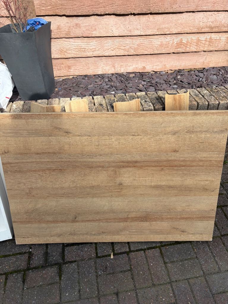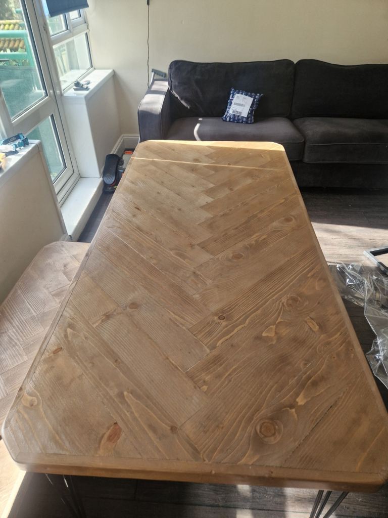 Table is solid oak and is extremely heavy. Legs can be removed for transportation.