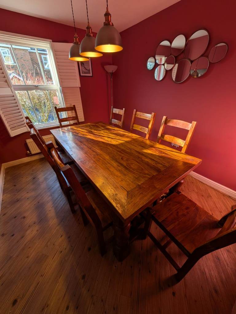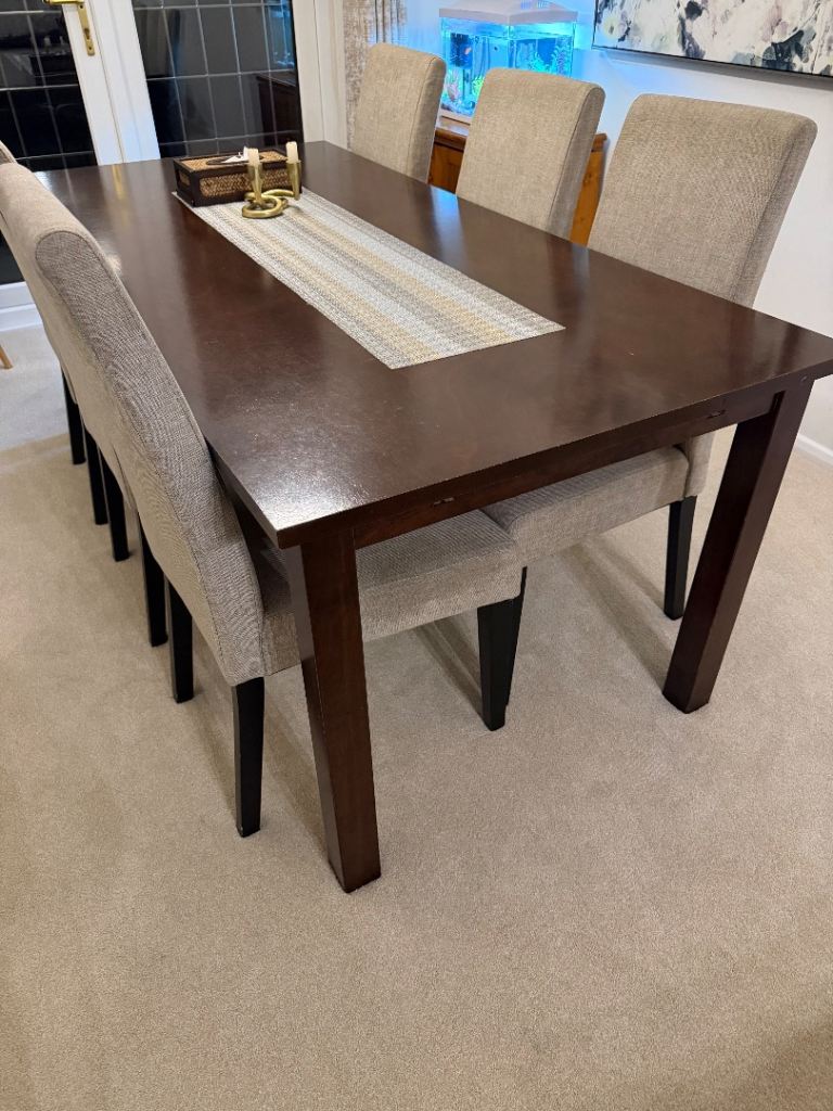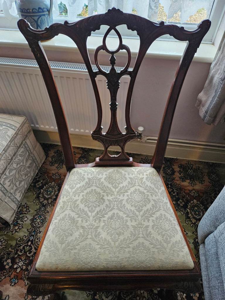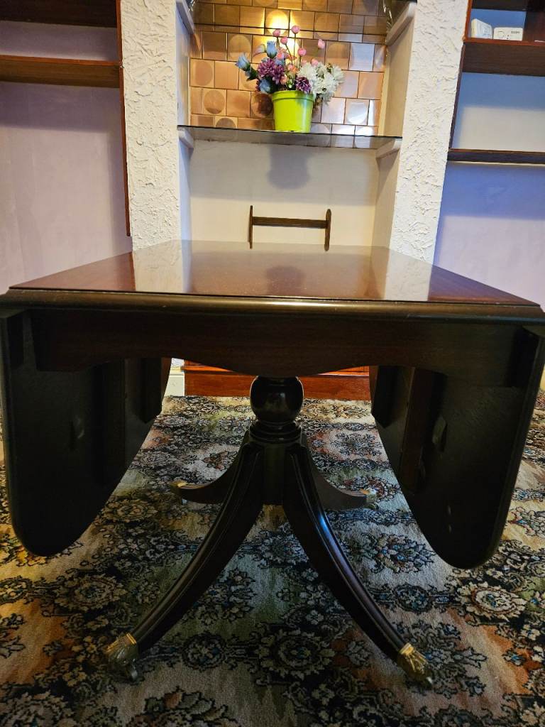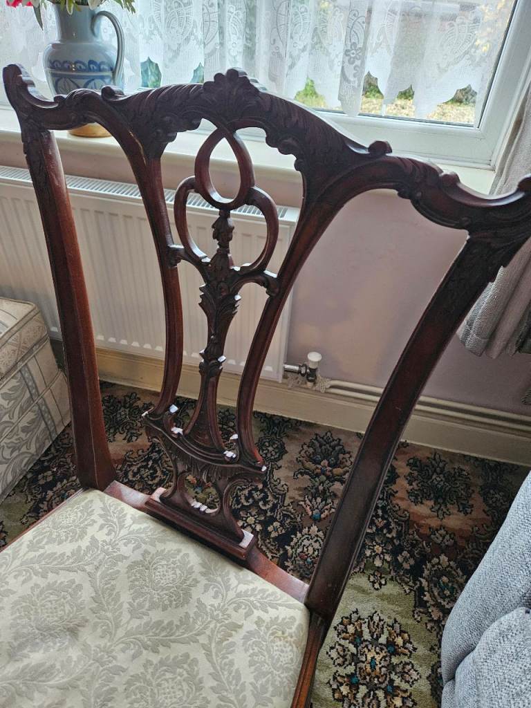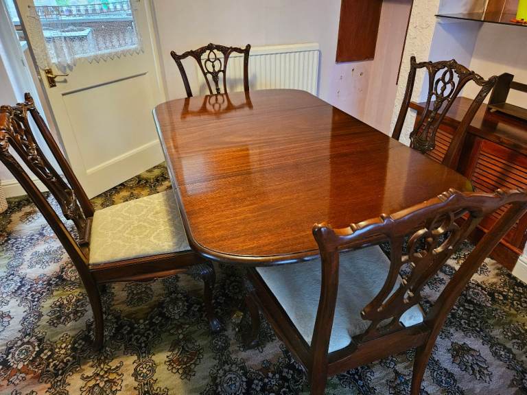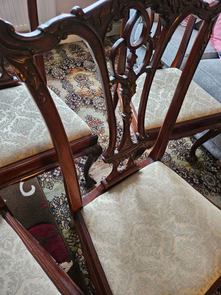 Posting for 8+ yearsMahogany dining table and six Chippendale reproduction chairs
