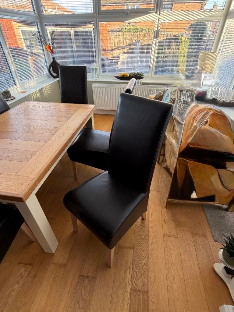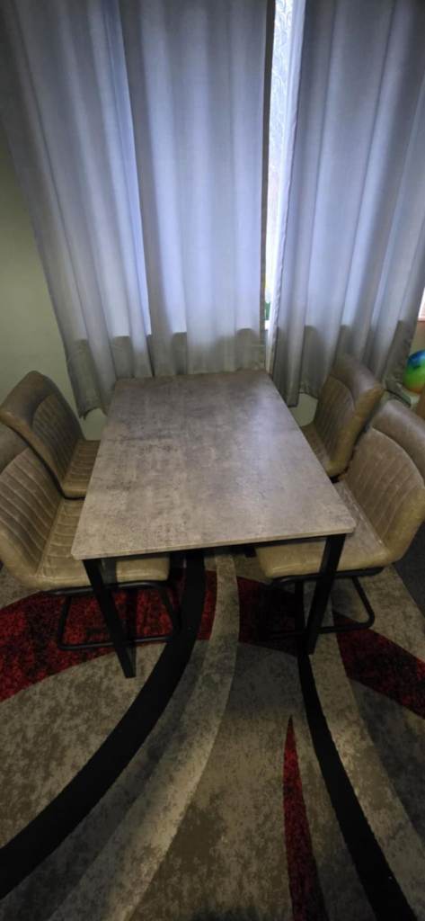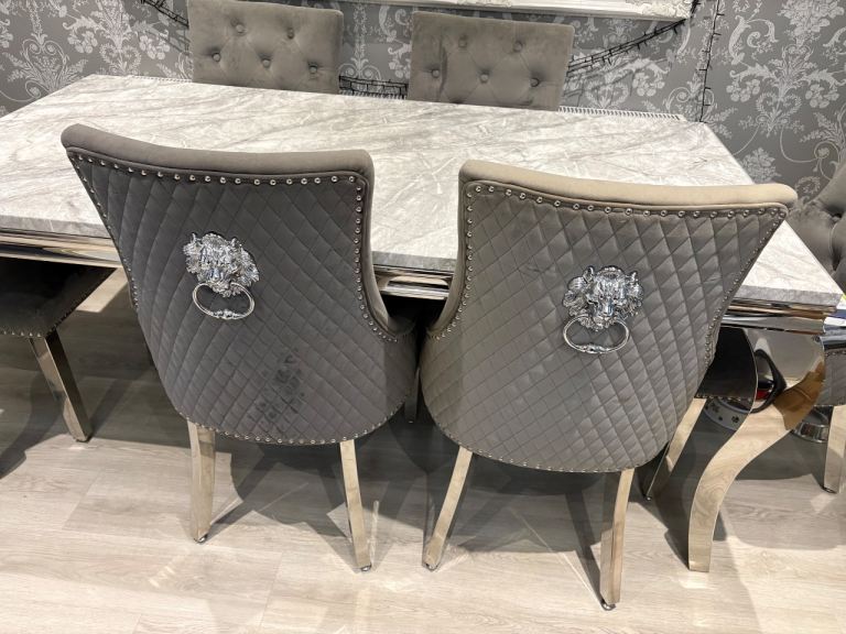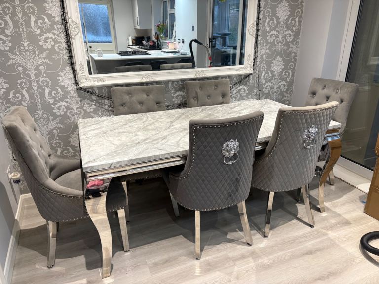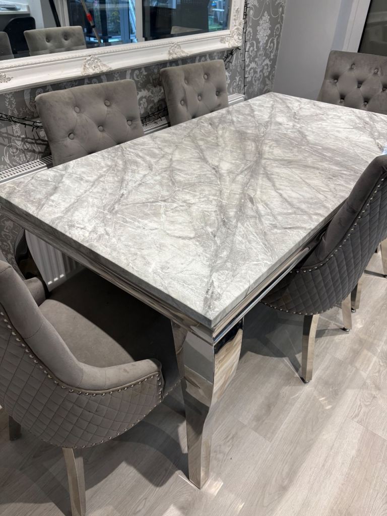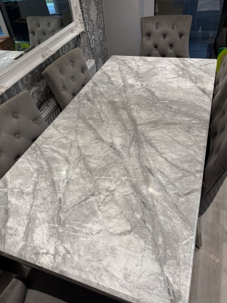 Marble effect dining table and 6 knocker chair set