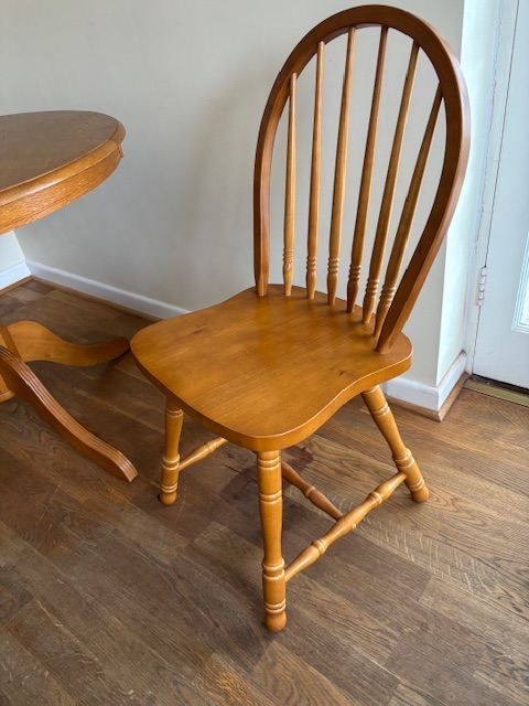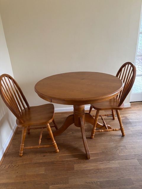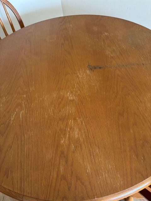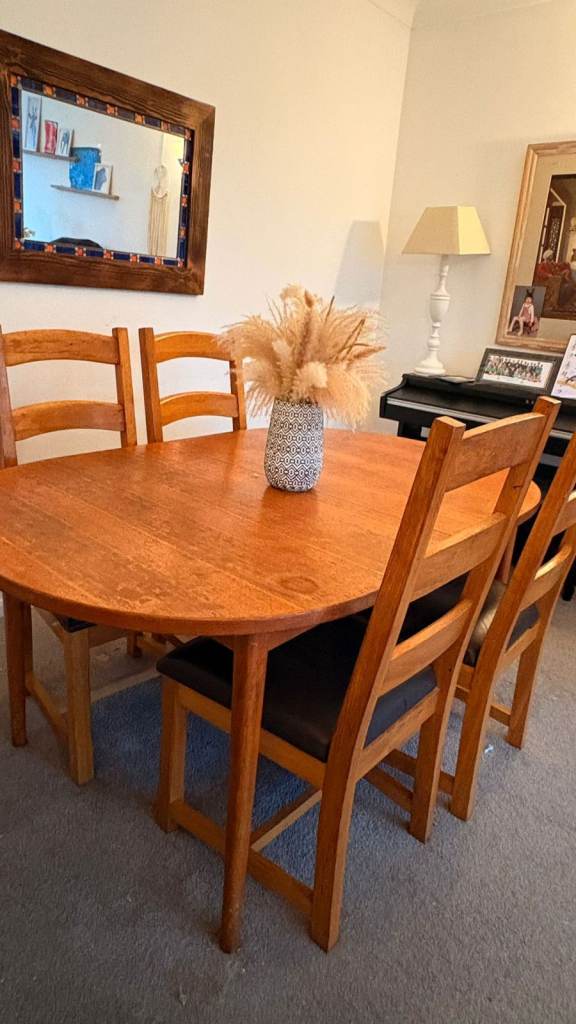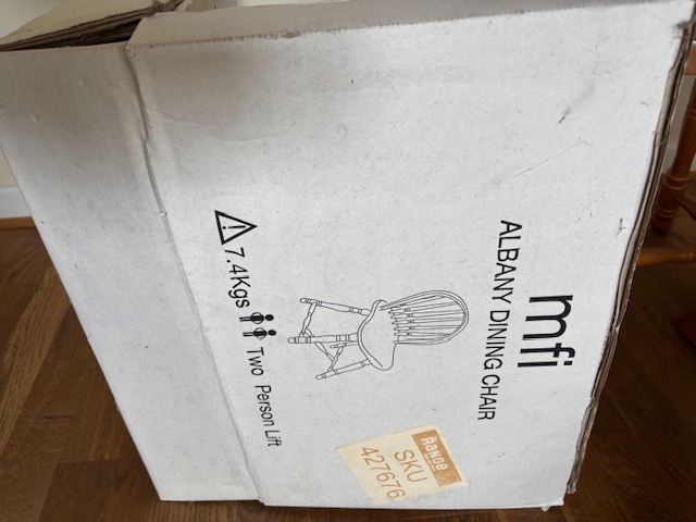 MFI Albany wooden table and chairs. 2 chairs are still unused in the boxes. Table marked but am sure this could be sanded away.