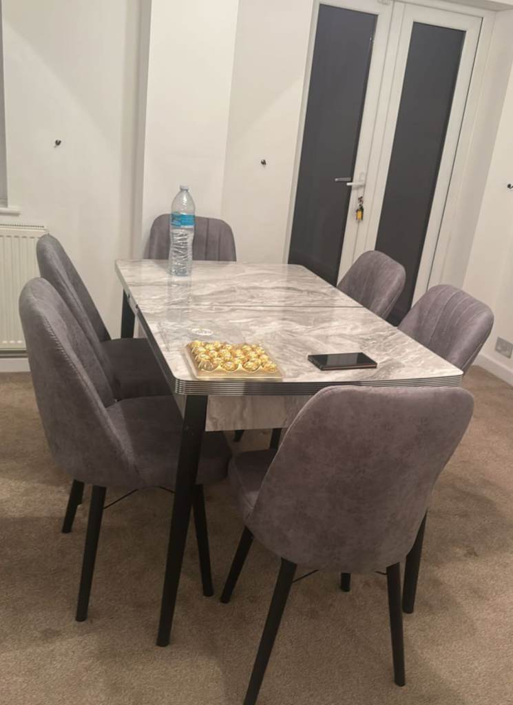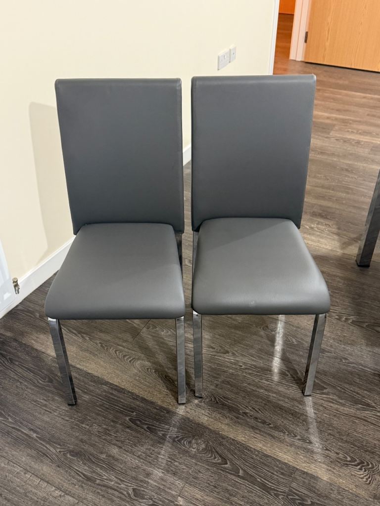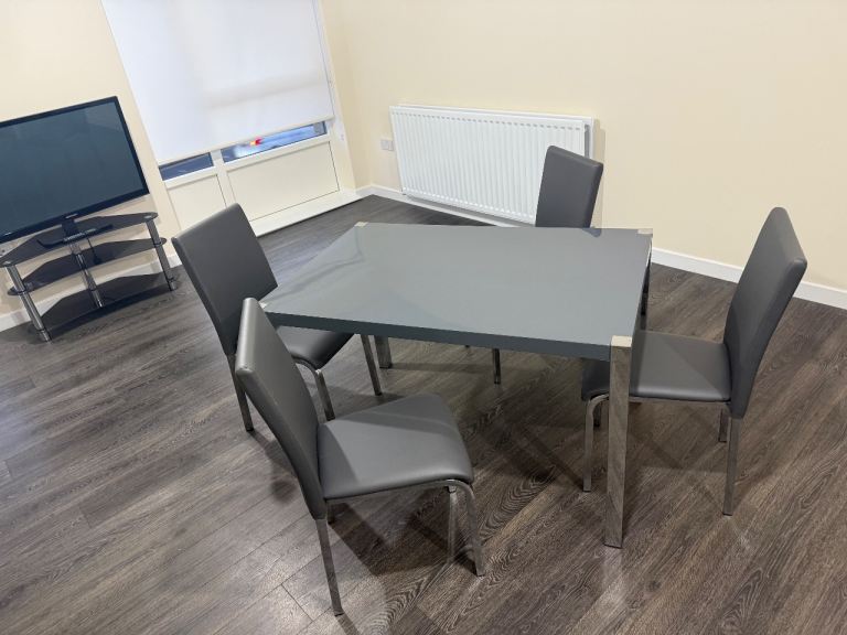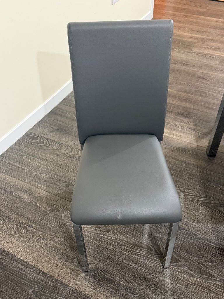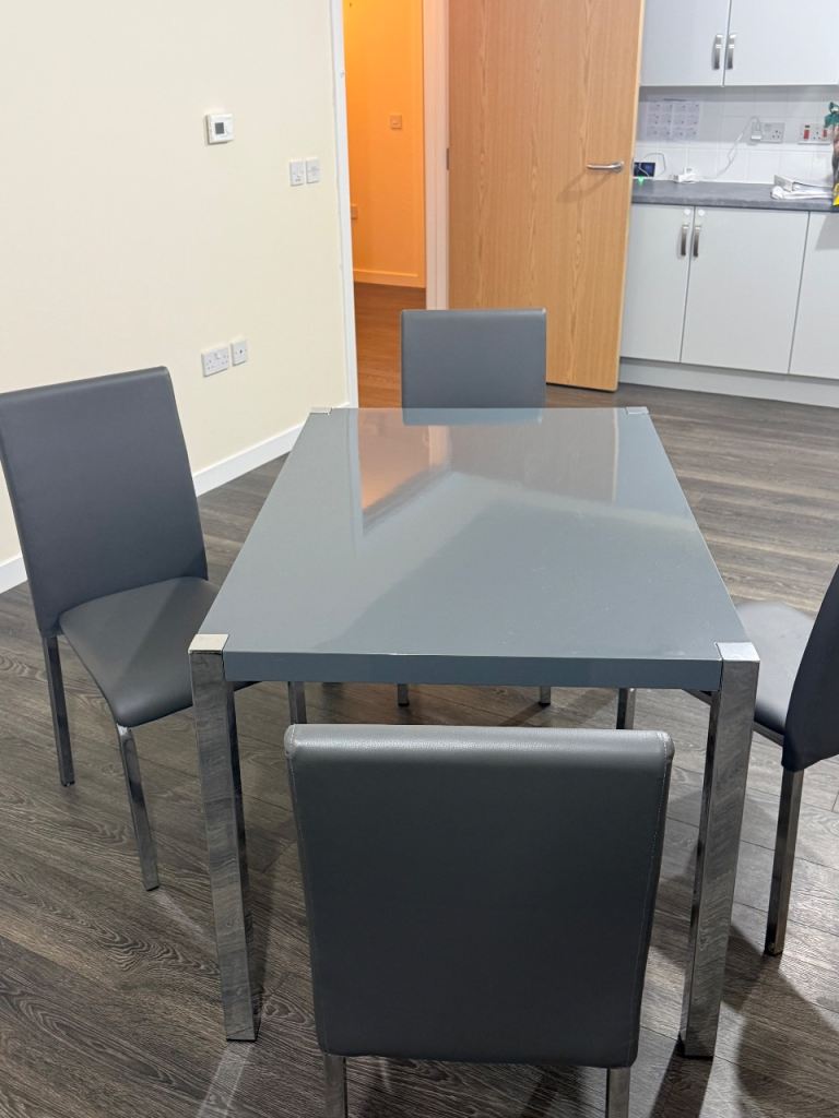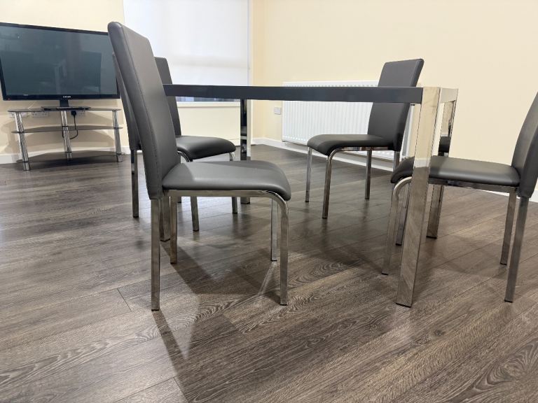 Modern Grey & Chrome Dining Table + 4 Chairs – Showroom Condition