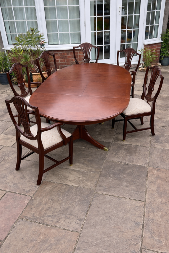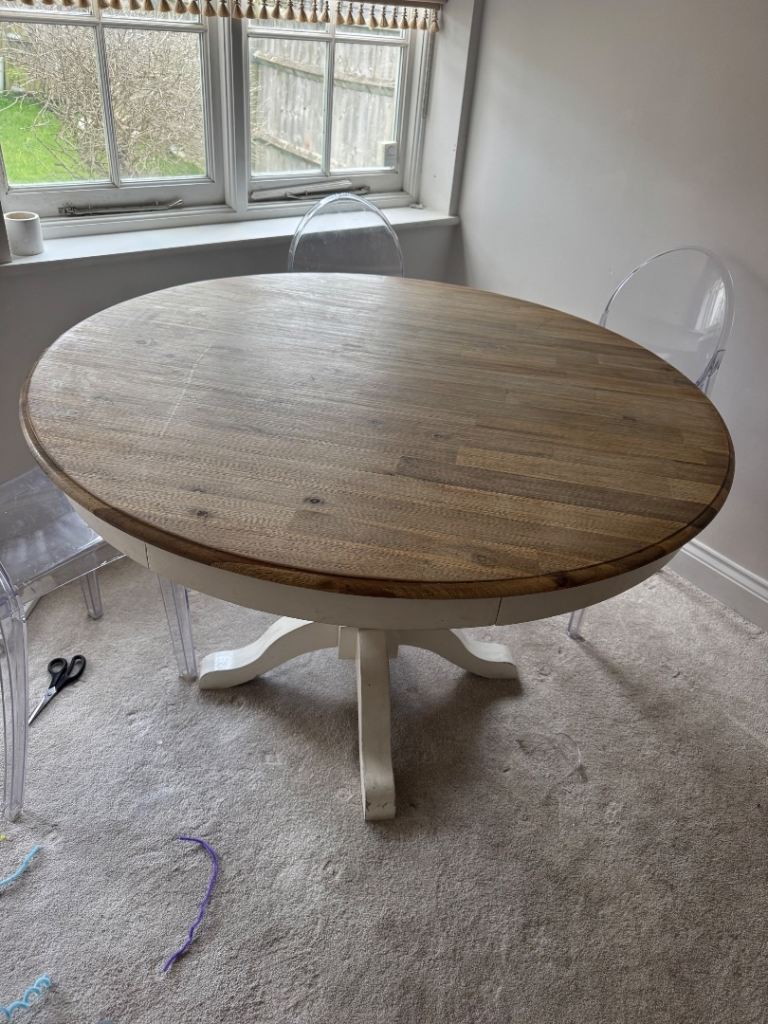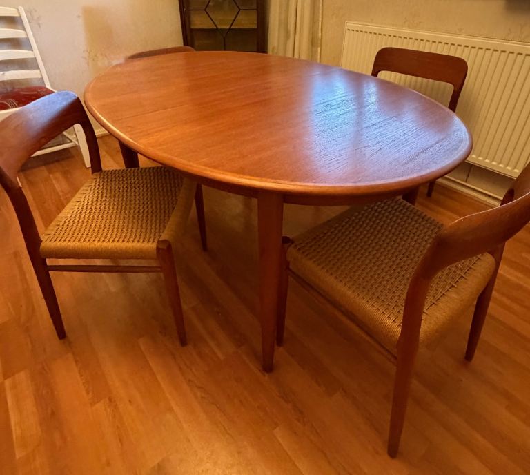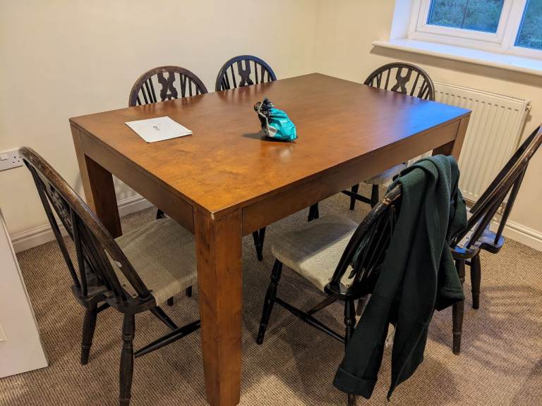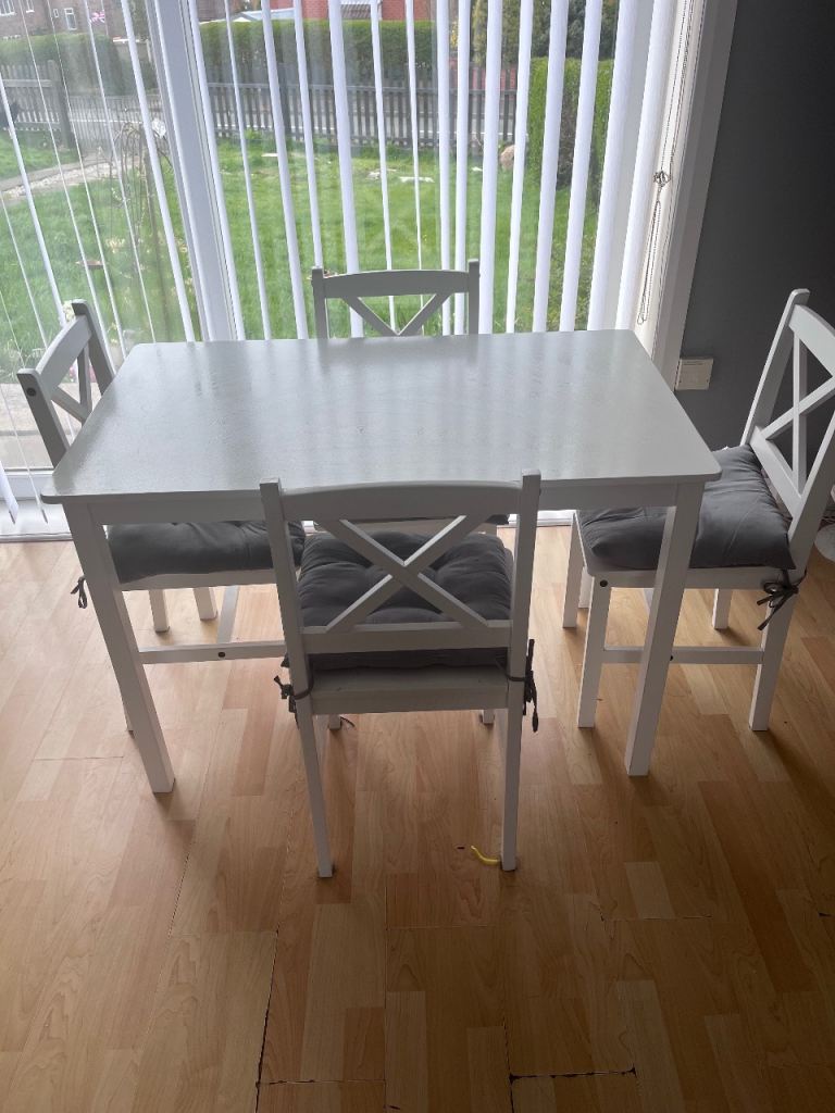 • 4 matching padded leatherette chairs (very comfortable)