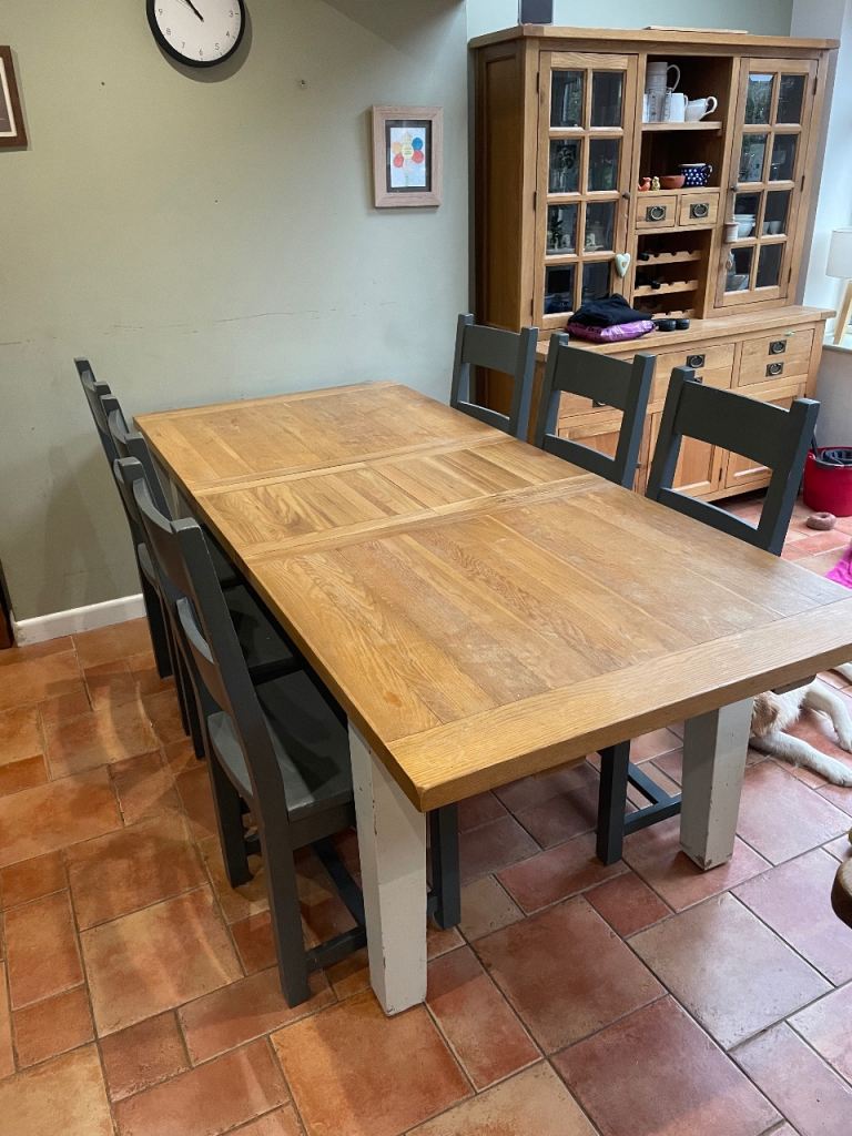 Posting for 13+ yearsNatural Solid Oak 5.9ft Extending to 7.5ft Dining Table with 6 Chairs