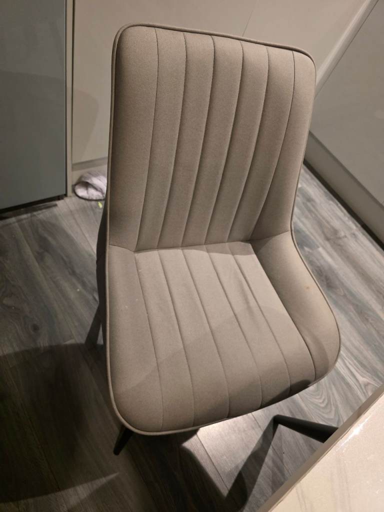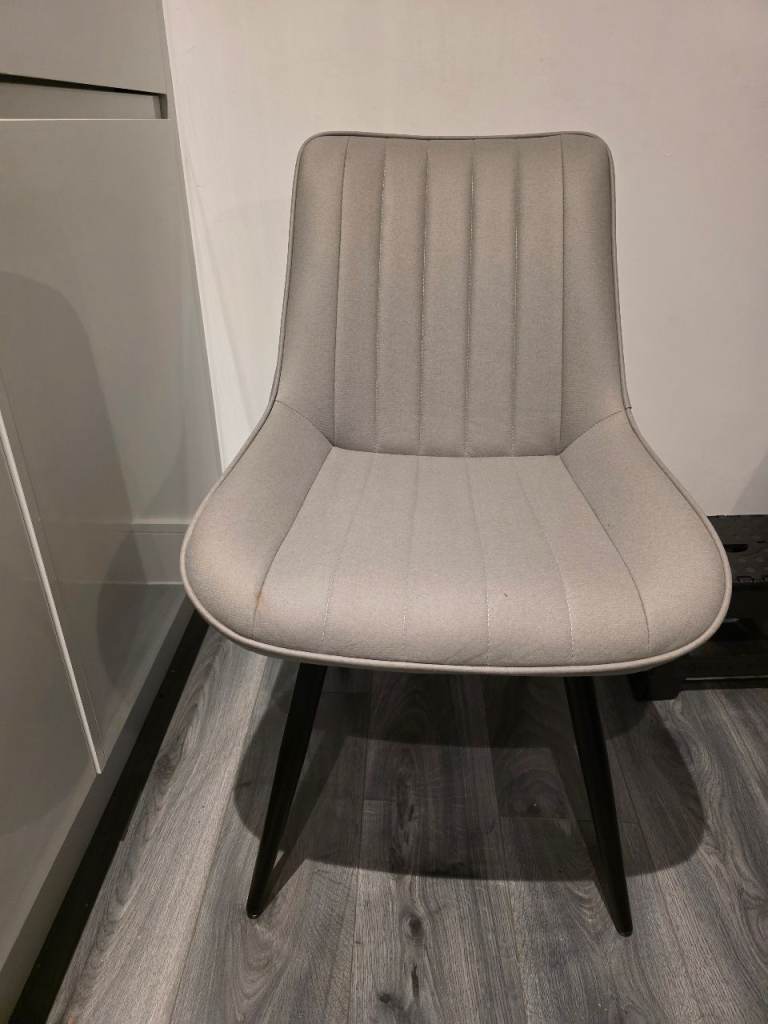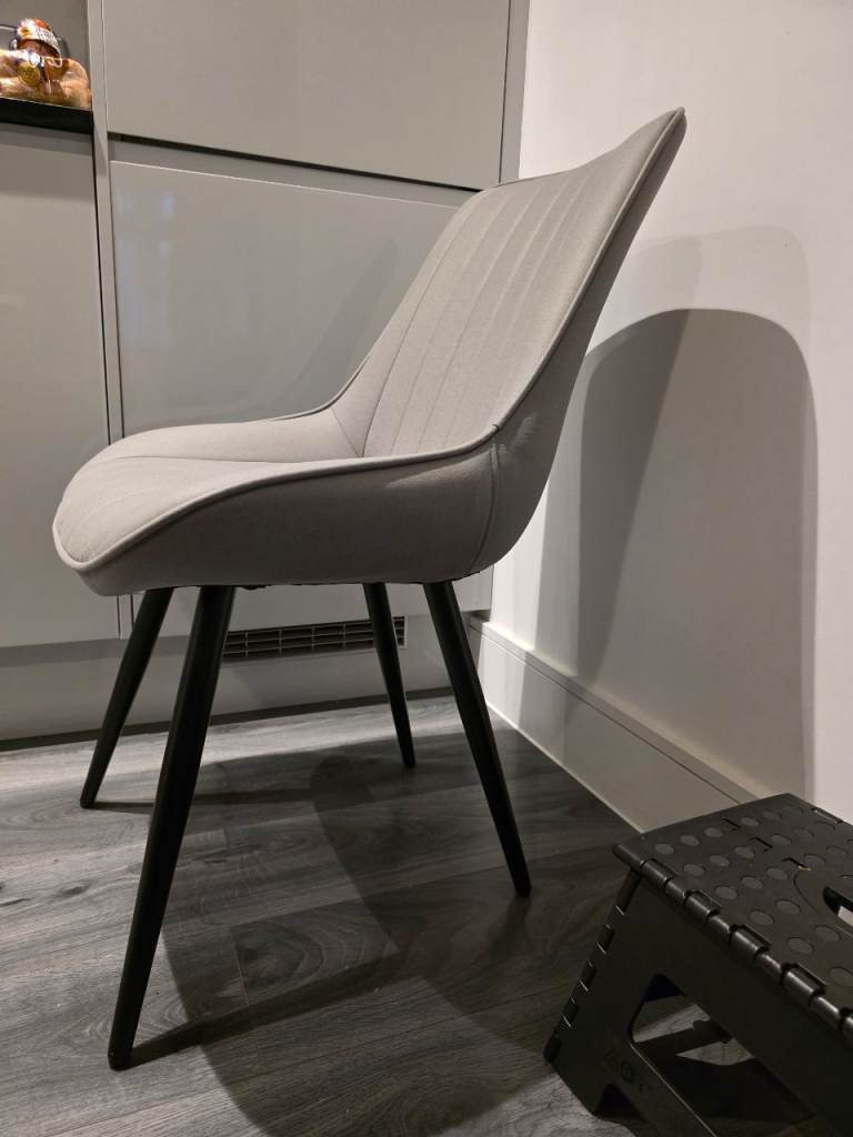 Light grey fabric chairs very comfortable with black metal legs
