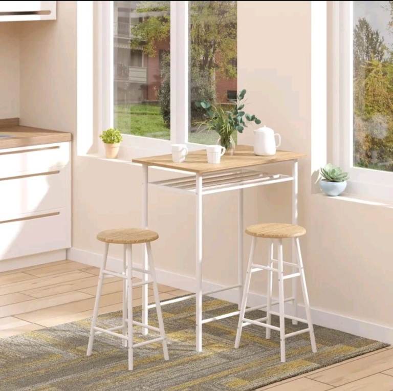 New - Table & Chairs - HomCom - 3-Piece Dining Set - White/Oak