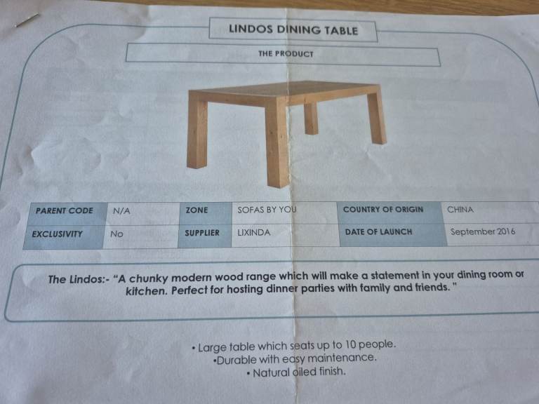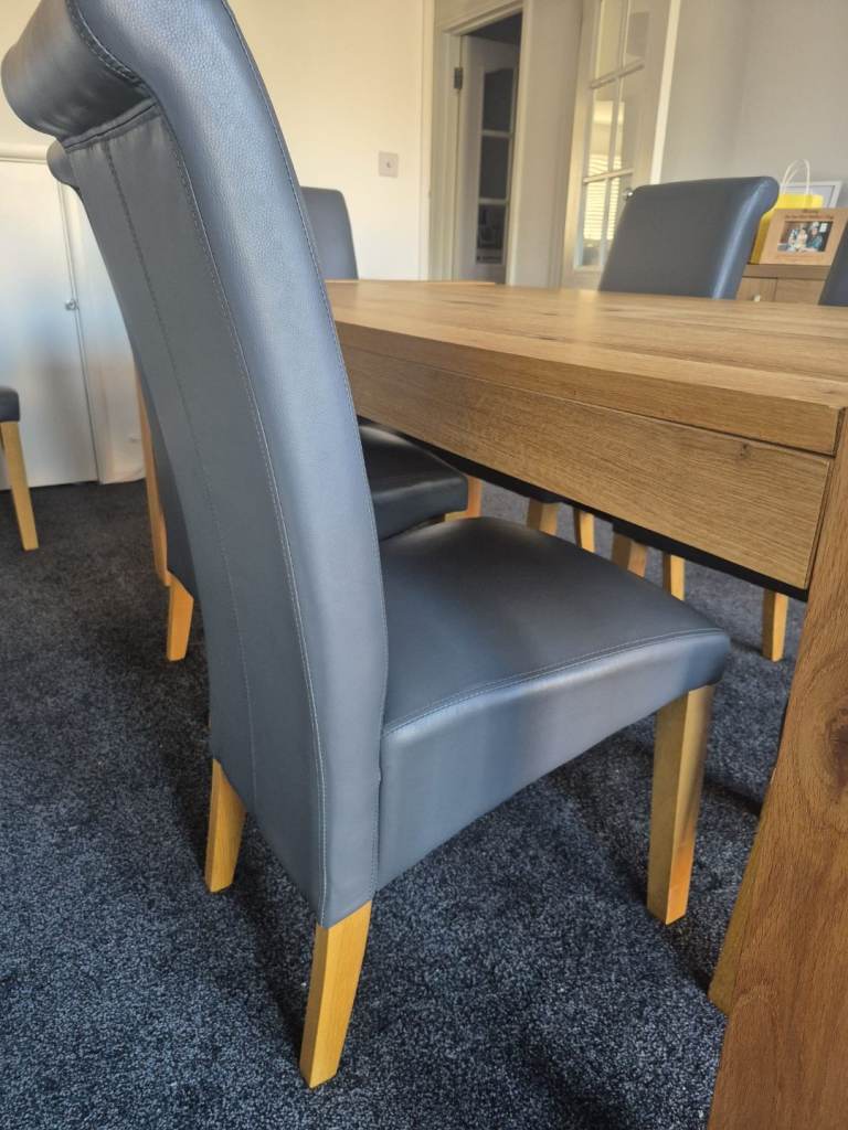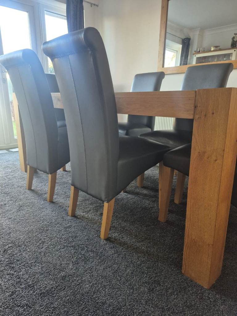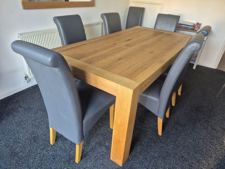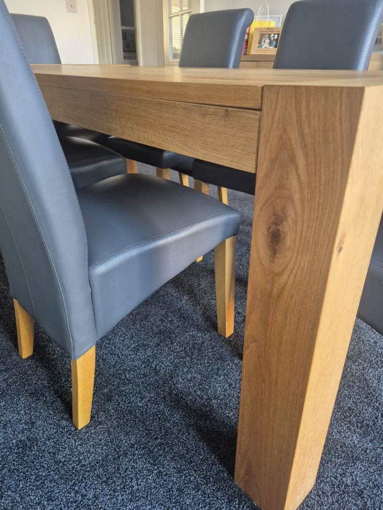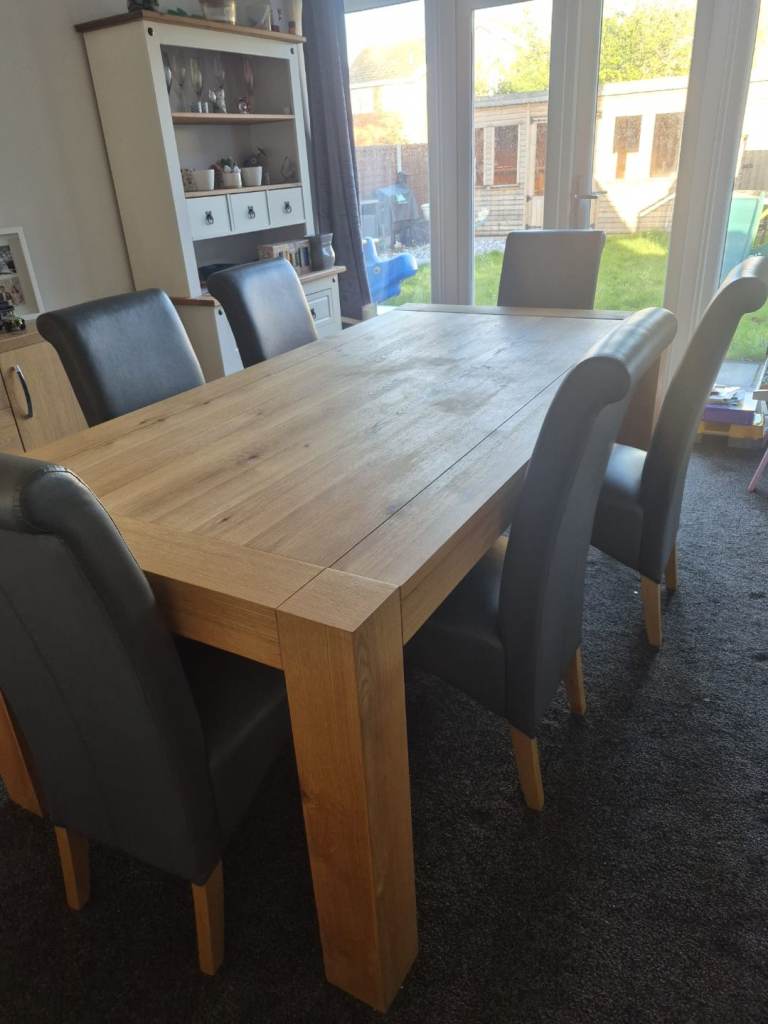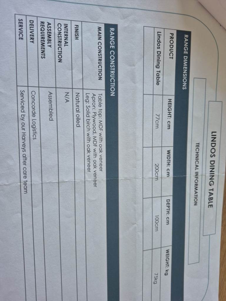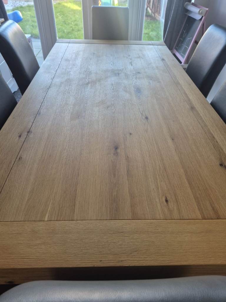 From Harvey's a large solid wood oak table. Sizes shown in photographs from original purchase paperwork.