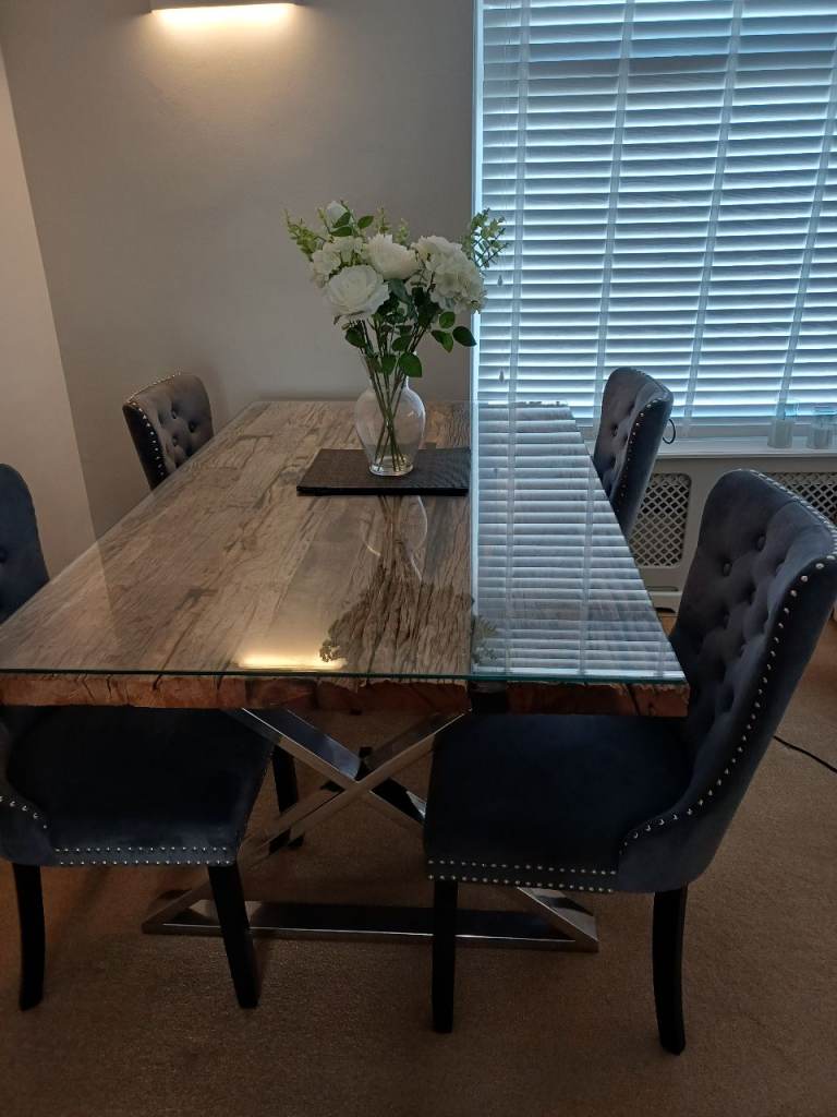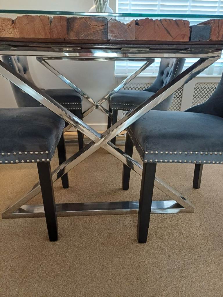 ONE-OF-A-KIND Bespoke Driftwood Dining Set | 8 Designer Velvet Chairs | RRP £3,500+