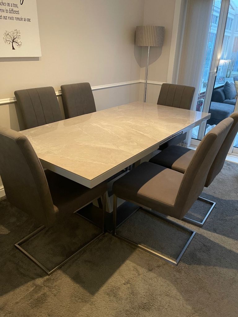 Butterfly extension allows the table to seat 6–8 comfortably.