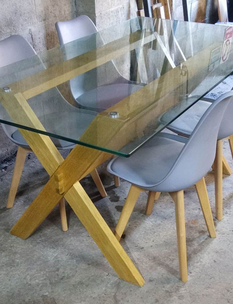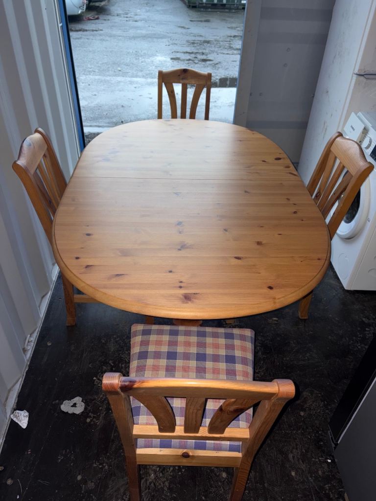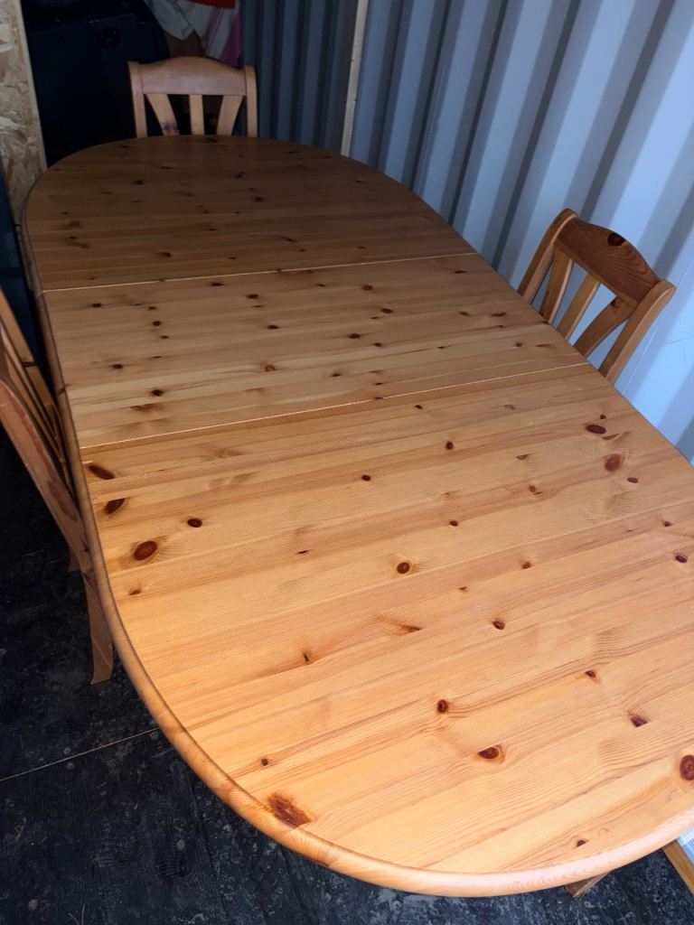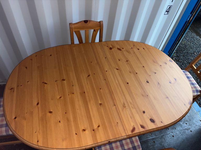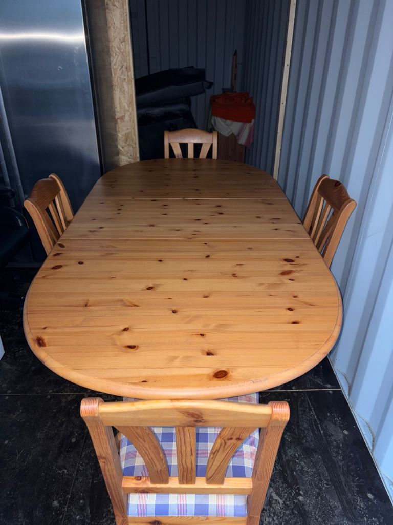 Pine extendable dining table and chairs