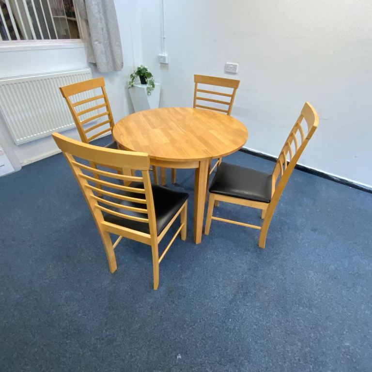 Pine extendable dining table and 4 chairs