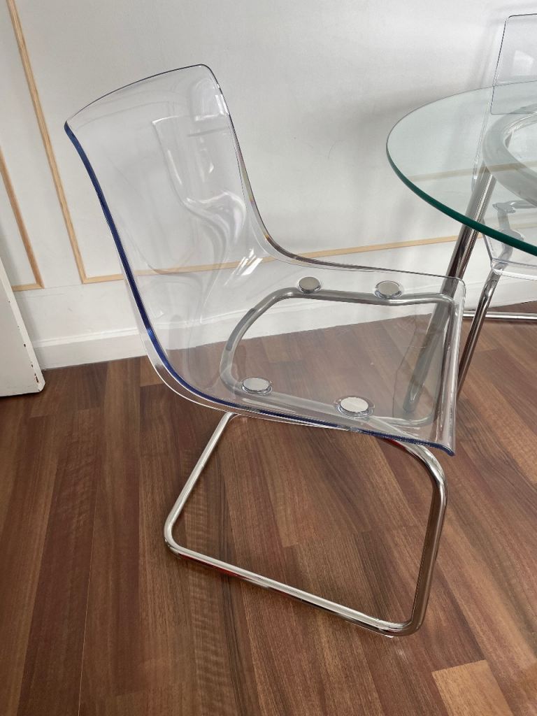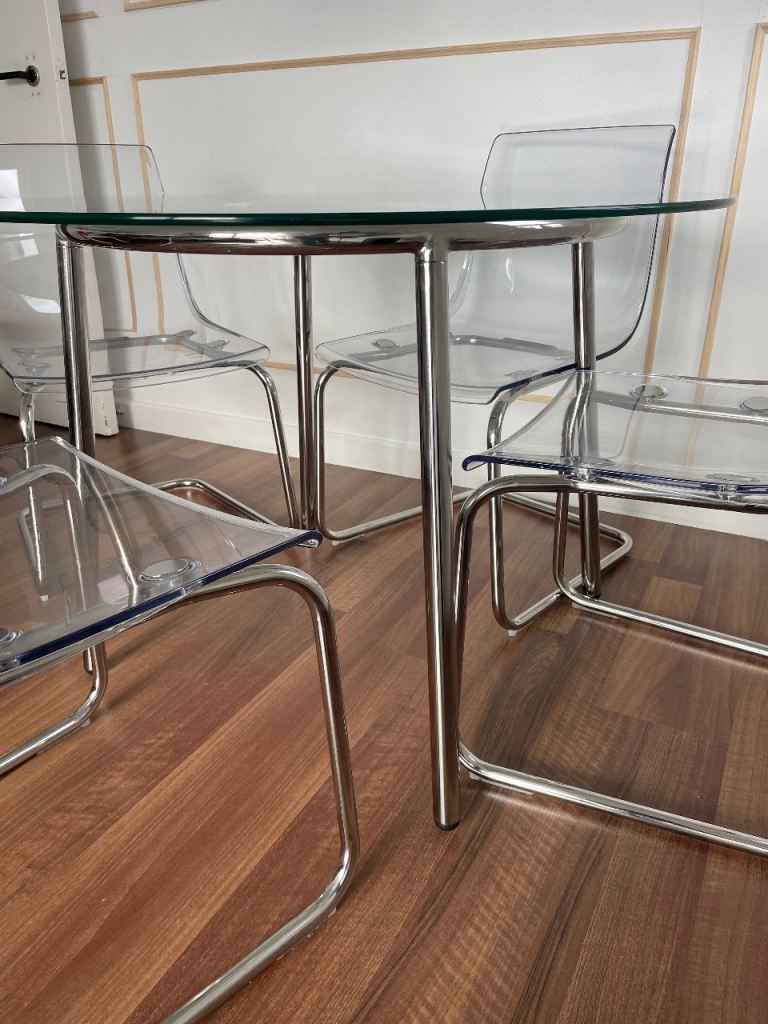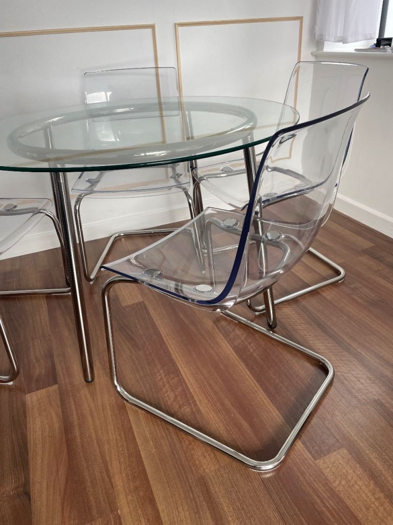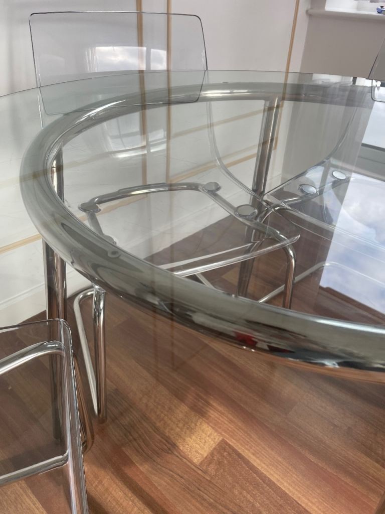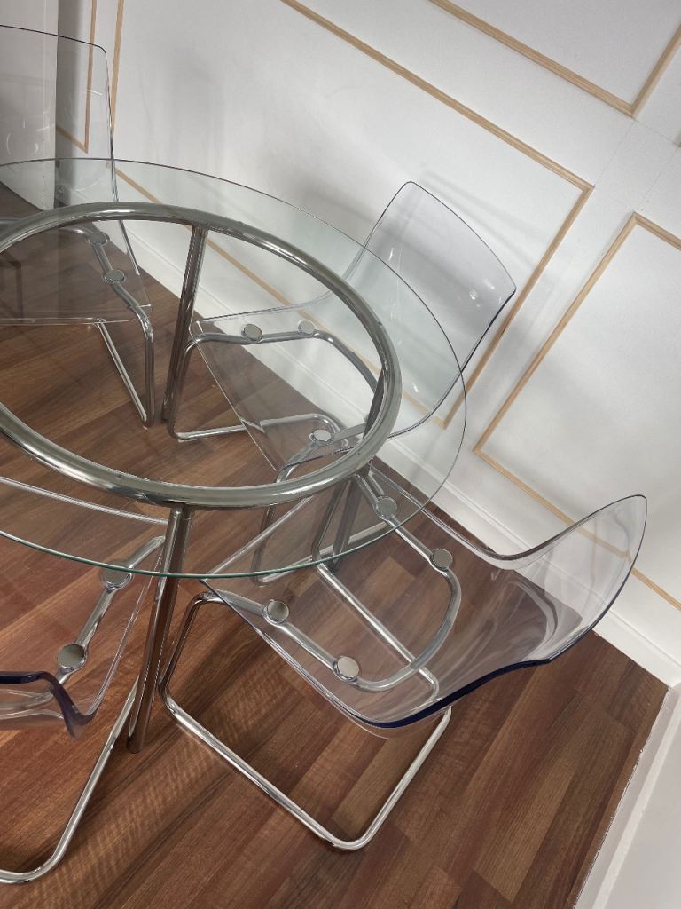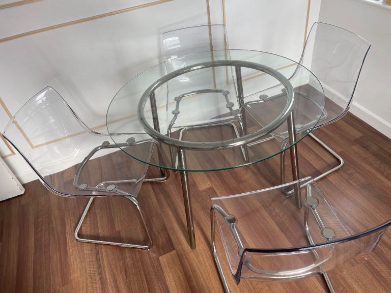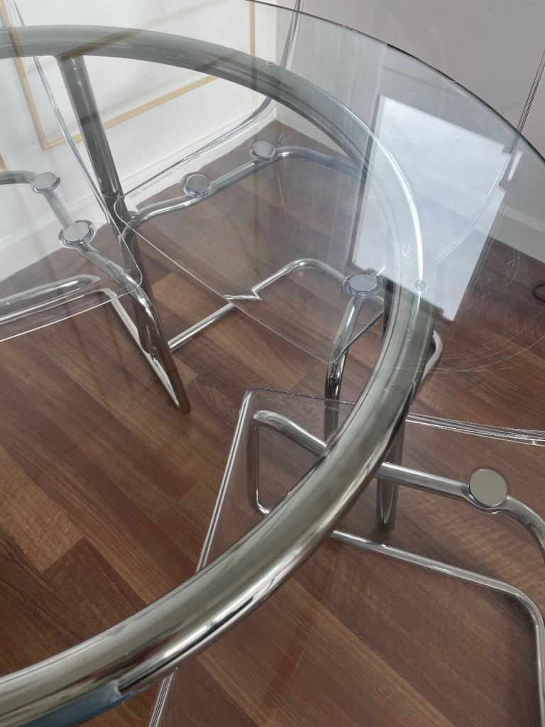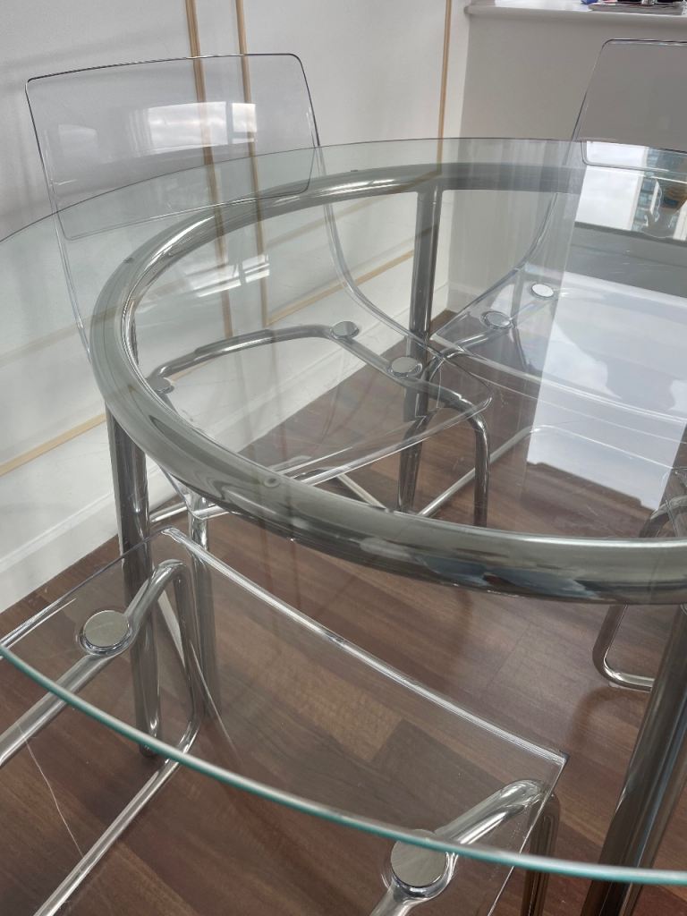 Round glass table 4 transparent chairs (Ikea)
