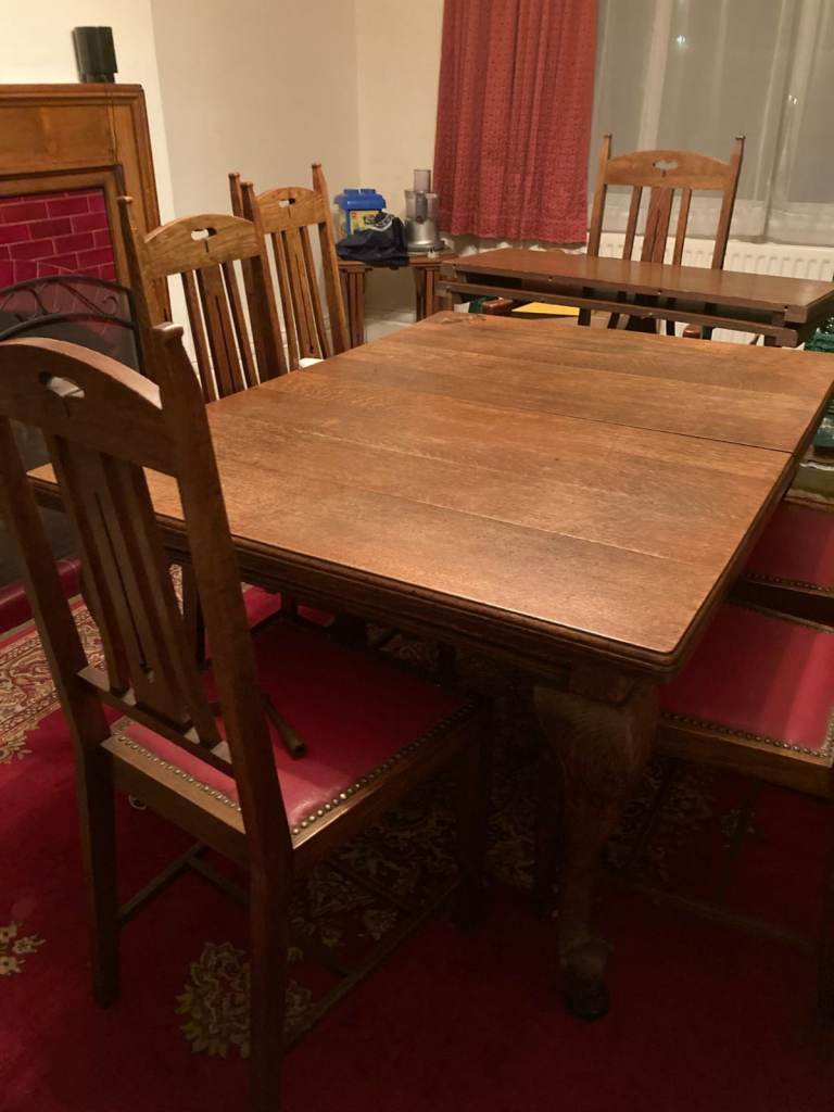 Posting for 4+ yearssix antique dining chairs - (2 carvers - 4 dining chair set)