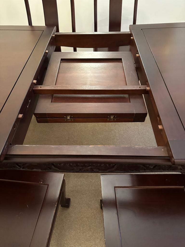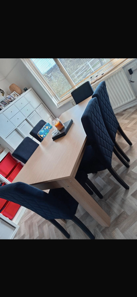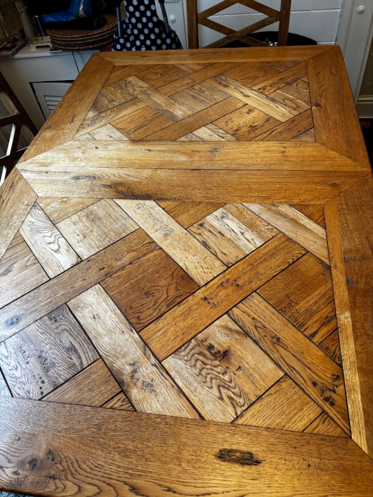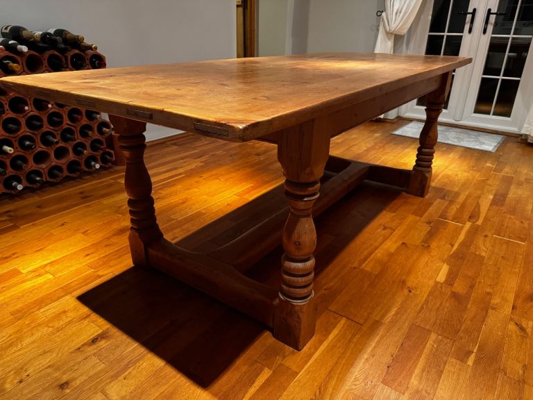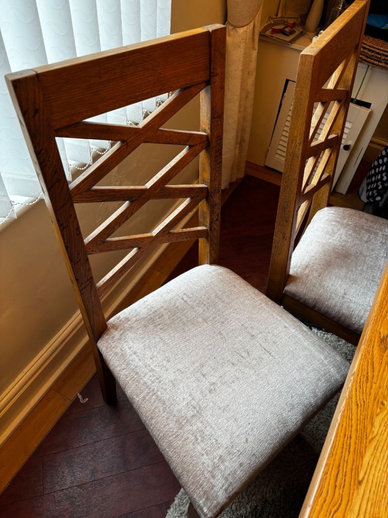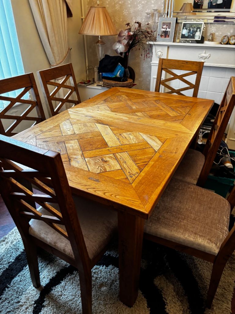 Solid oak extendable dining table and 6 chairs cost £2000