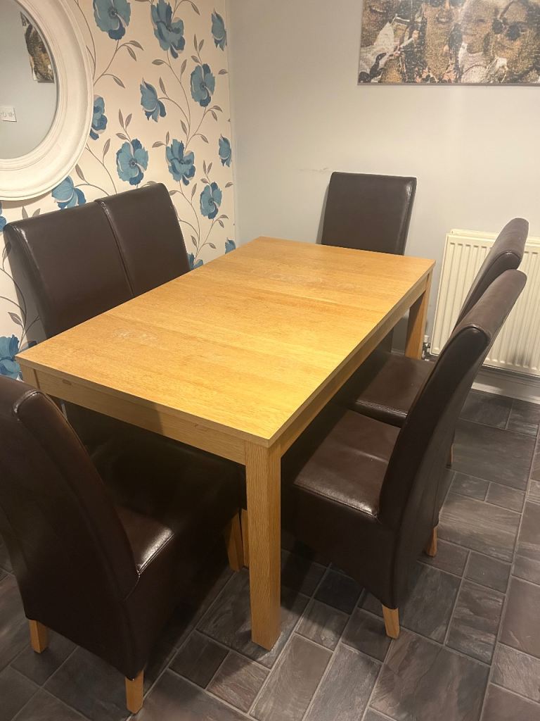 Posting for 11+ yearsSolid Oak extending table and 6 chairs