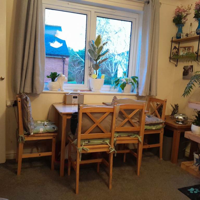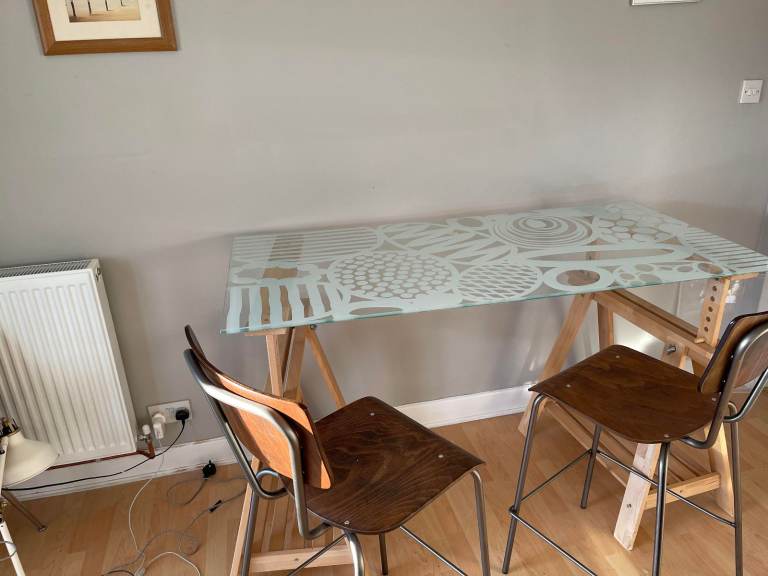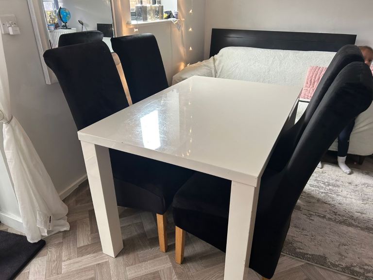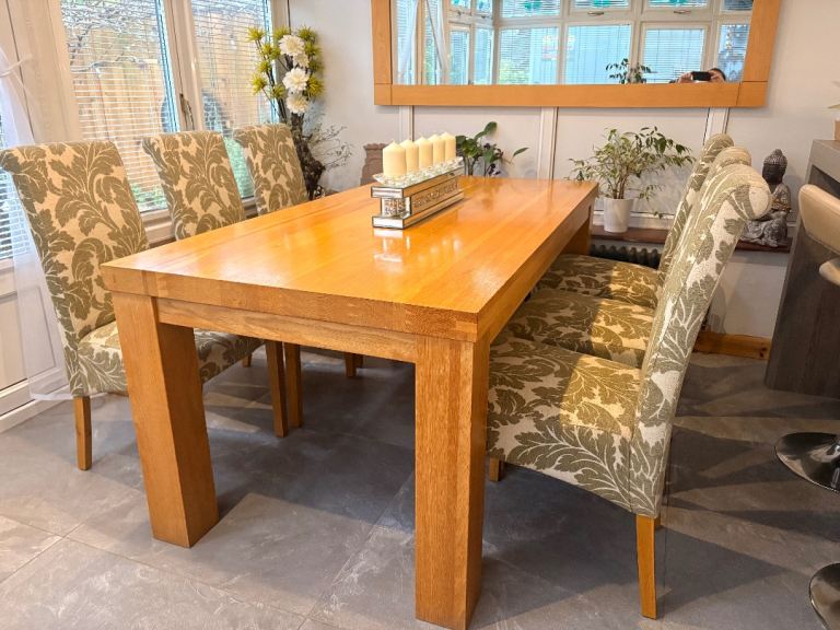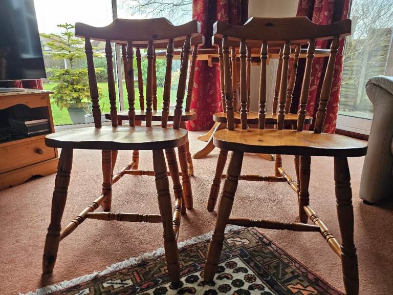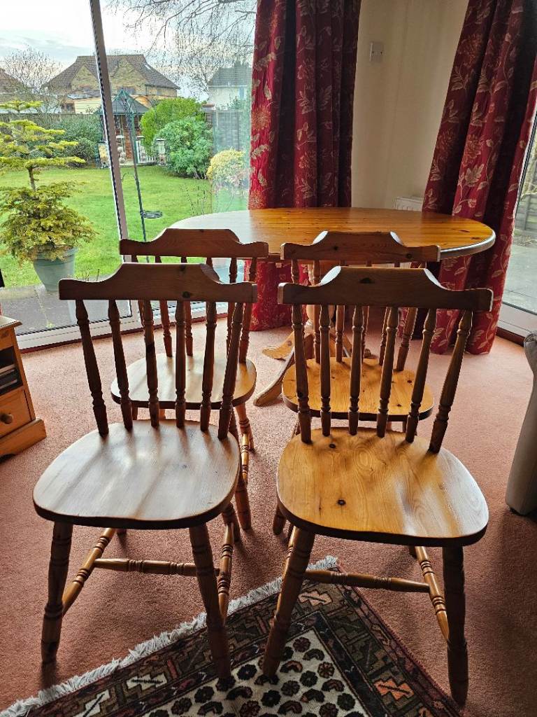 Very sturdy solid pine pedestal dining table and 4 chairs. Overall good condition but table top has some marks (see photos)