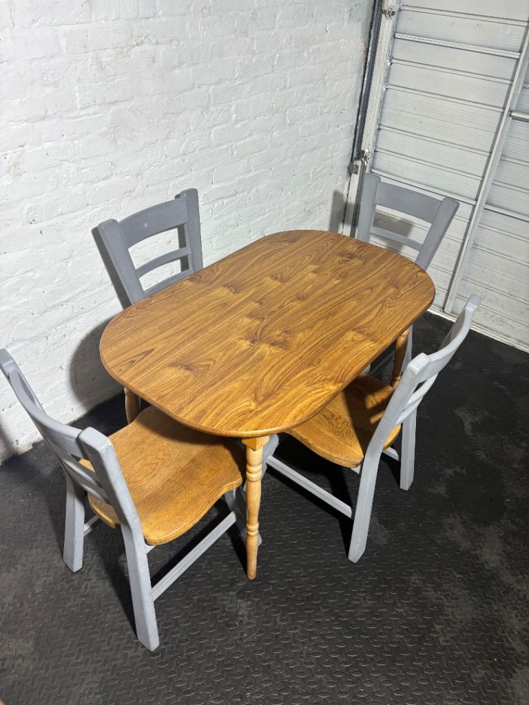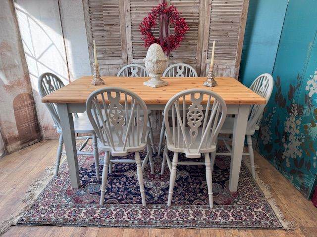 Solid pine table with 5 matching chairs.