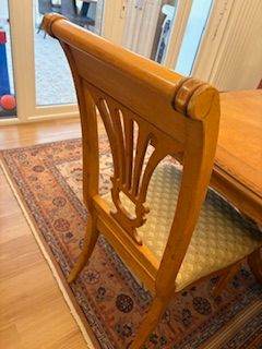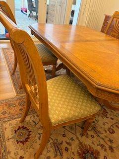 Posting for under a monthSolid polished walnut wood extendible dinning table and 8 chairs