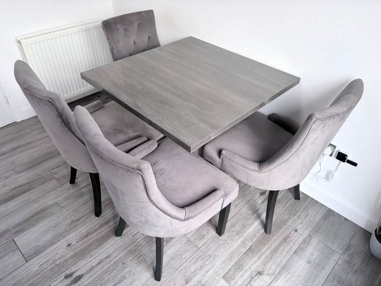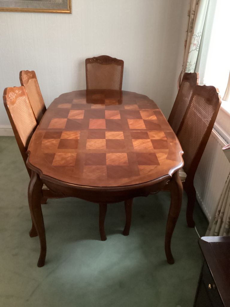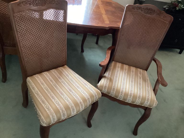 Solid wood dining table, 4 chairs & 2 carver chairs for sale.