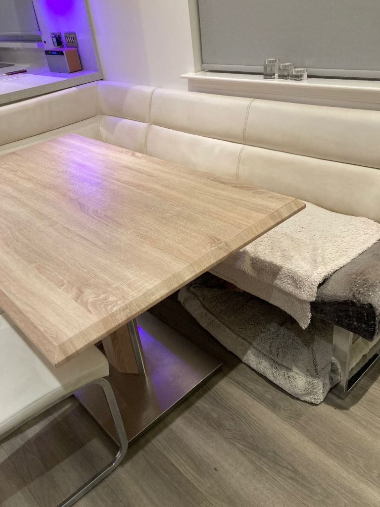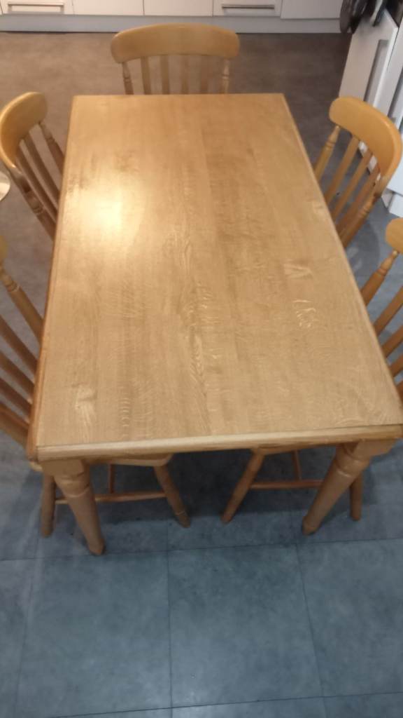 In very very good condition. Both table & chairs. Few marks here and there on wood but easily overlooked.