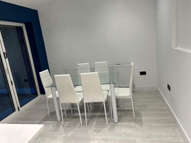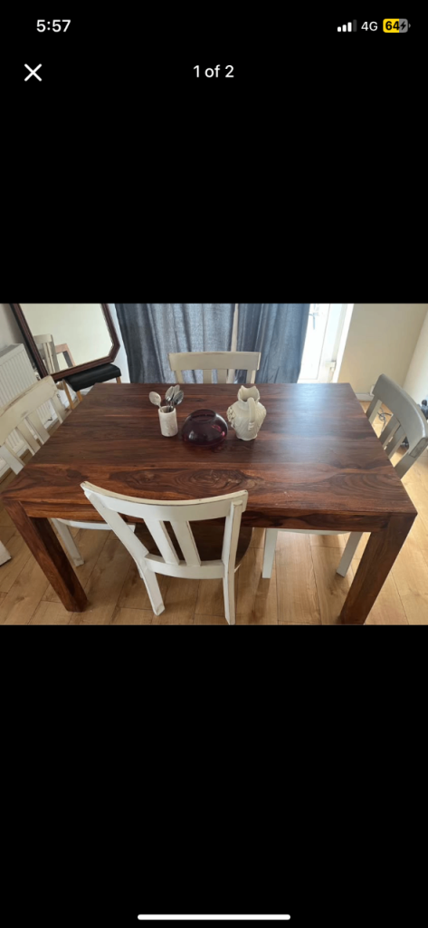 Solid Wood Dining Table & Upholstered Chairs – Excellent Condition