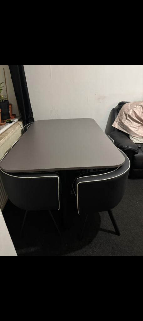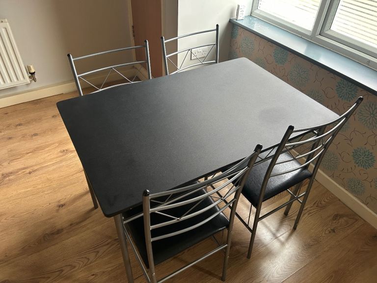 Solid Wood Dining Table & 4 Upholstered Chairs – Excellent Condition