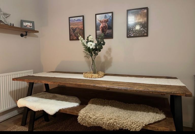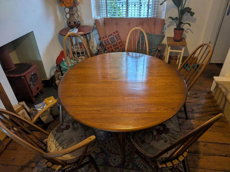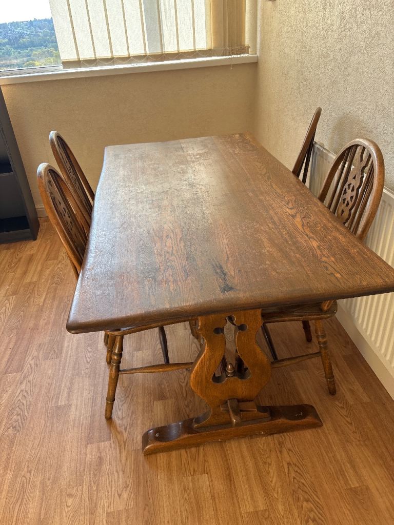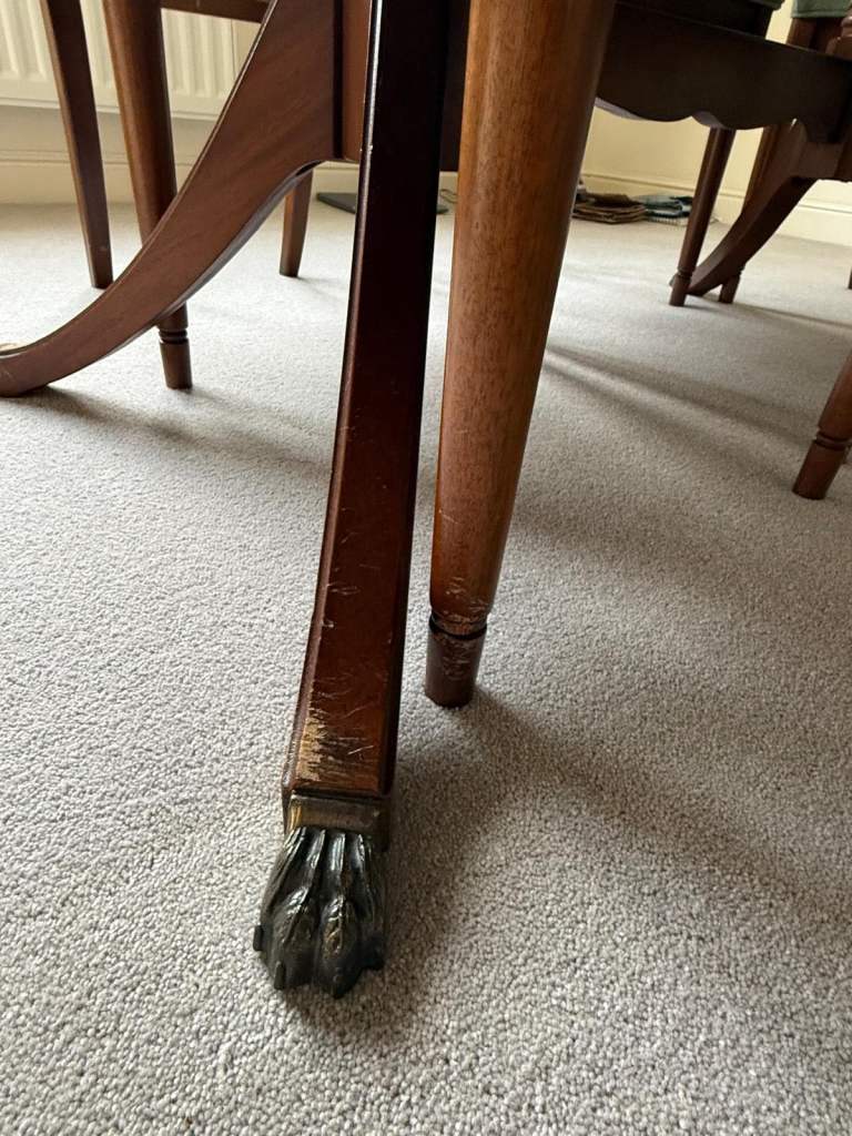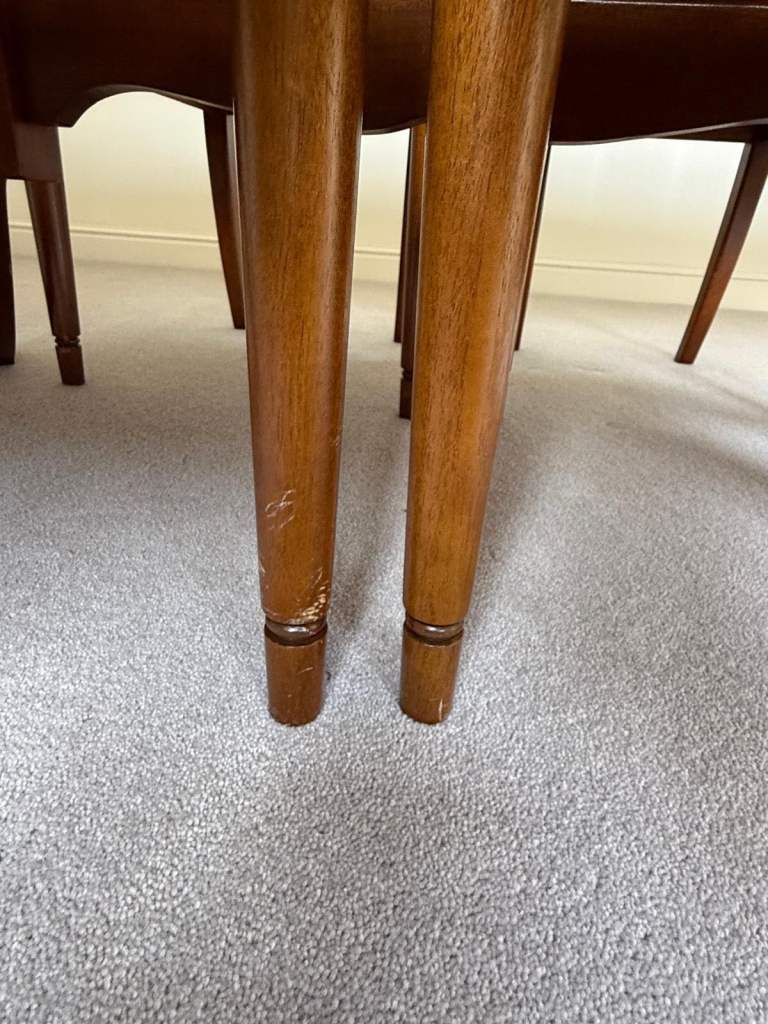 There is some cosmetic wear to the legs of the table and chairs from previous puppy chewing – purely superficial and could be easily sanded and refinished if desired.