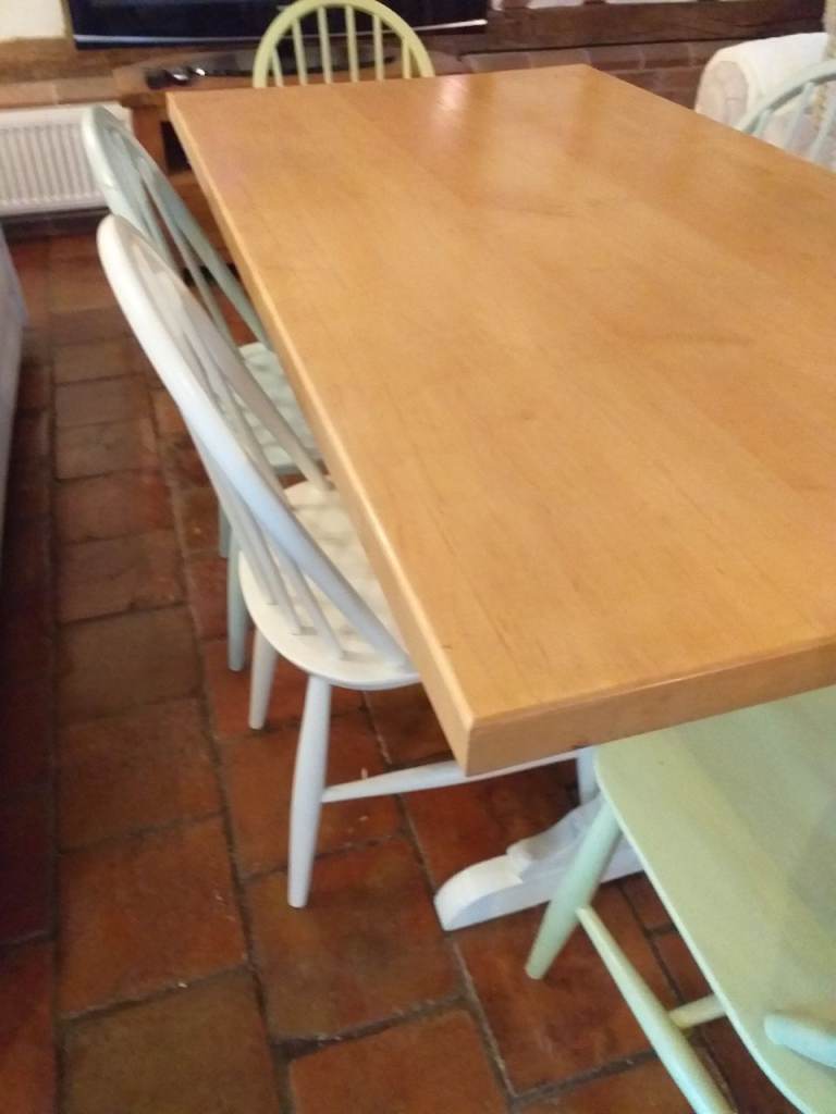 free delivery. Measures 150 cm x 90 cm, solid wood and cream.