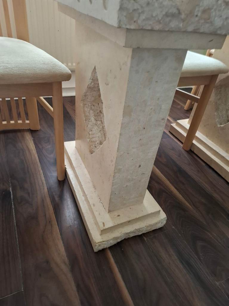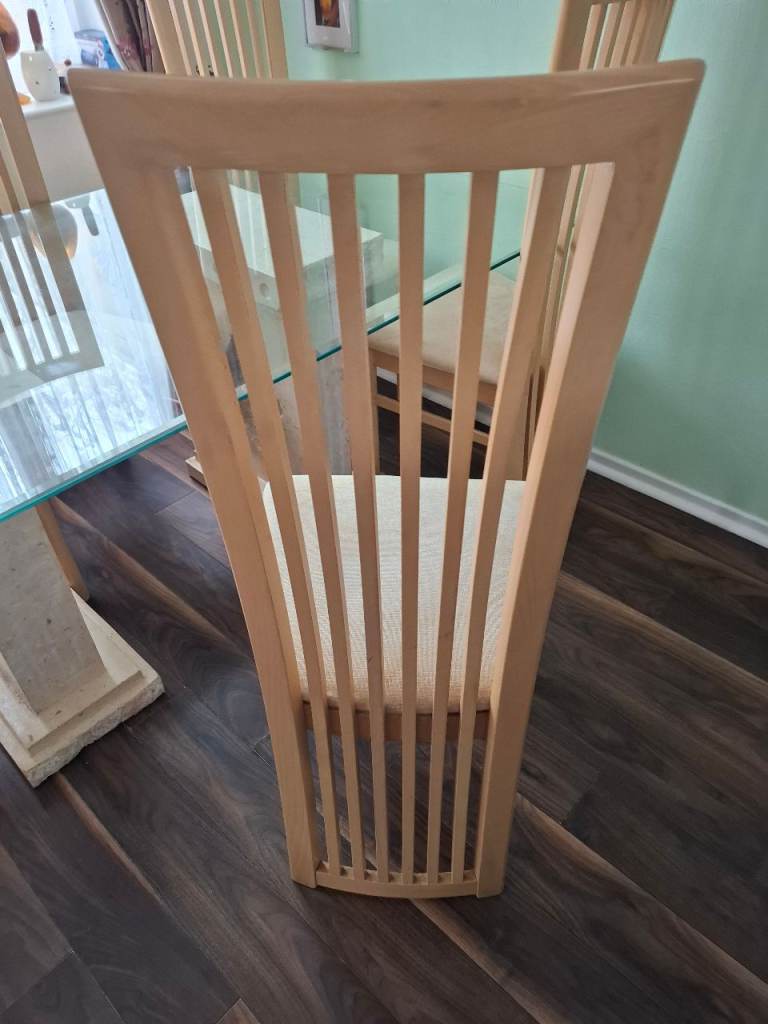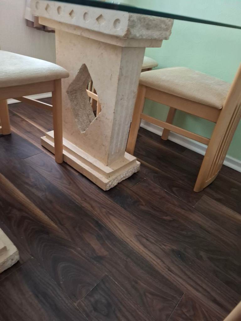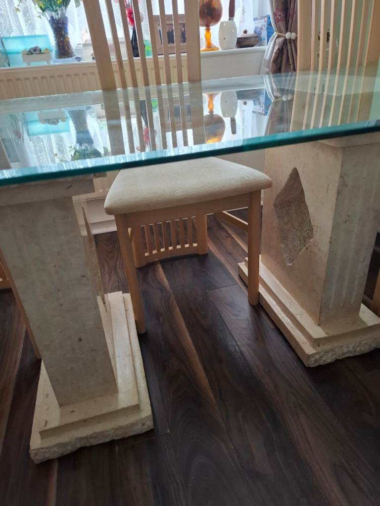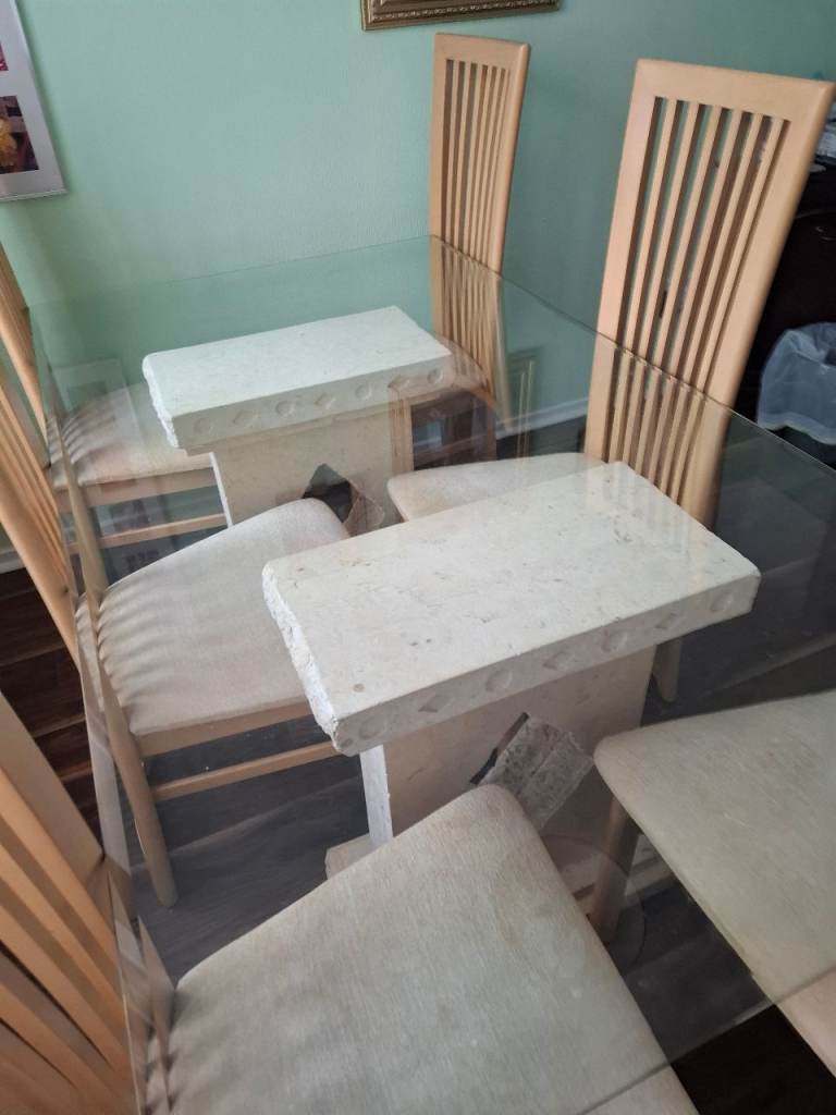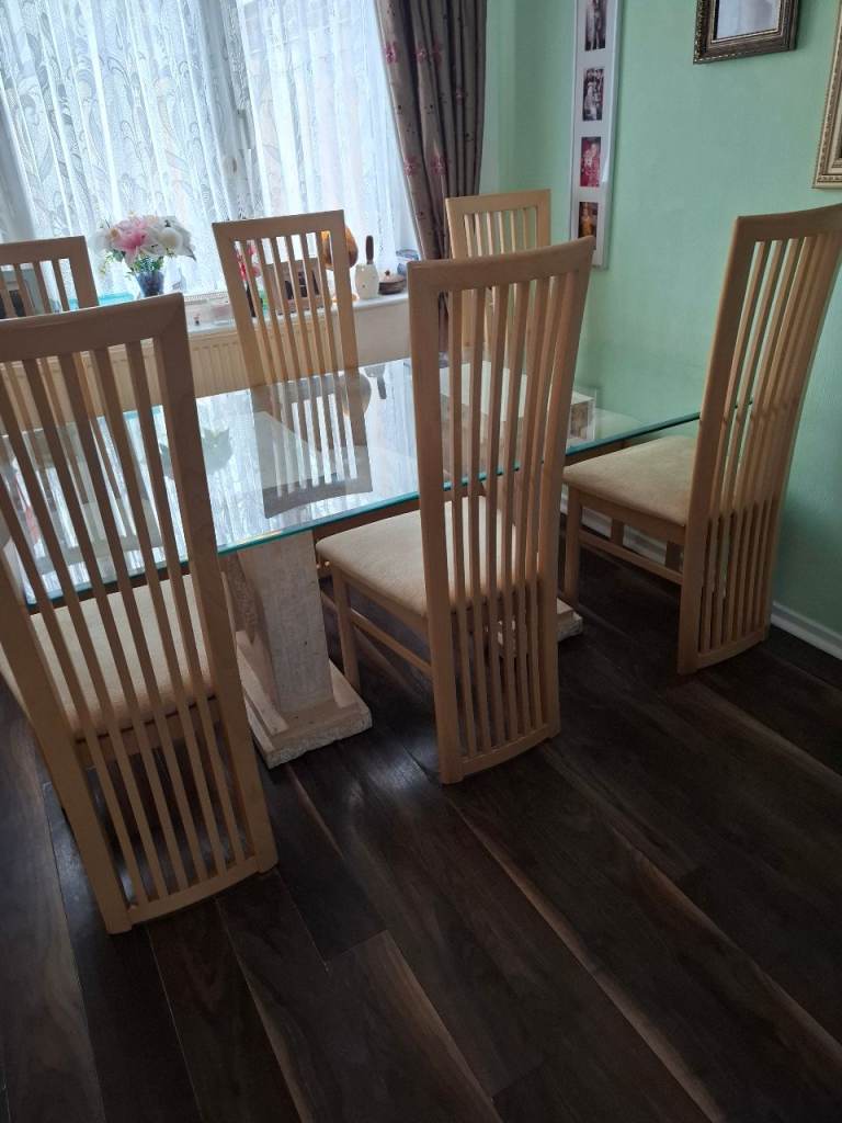 Table and 6 chairs very good condition some slight marks on a seat but easy to clean just to big for house now cost £3,000 when bought it new £200