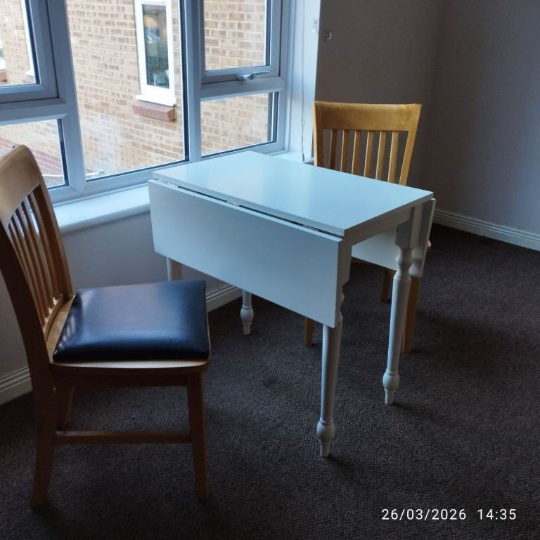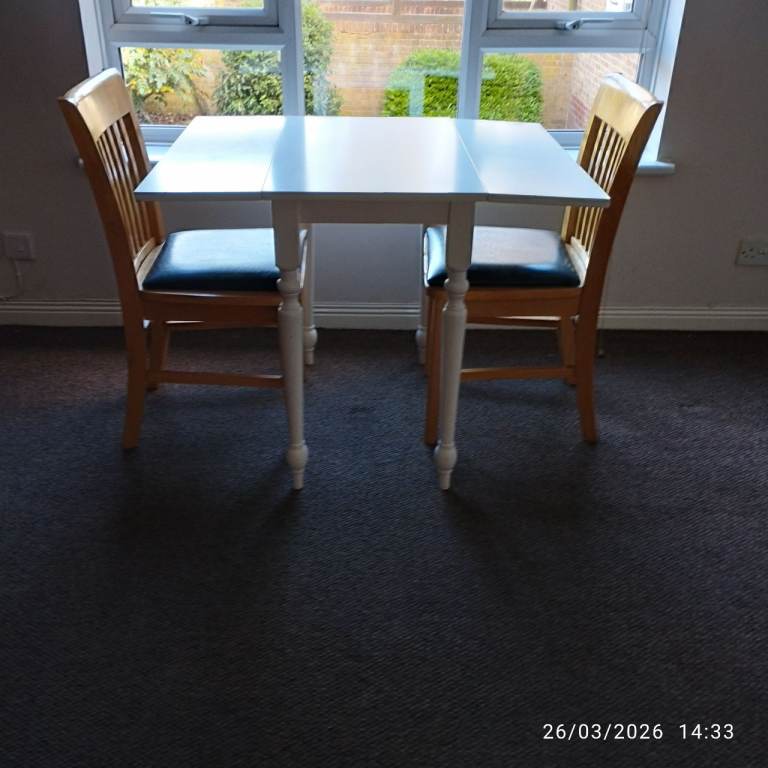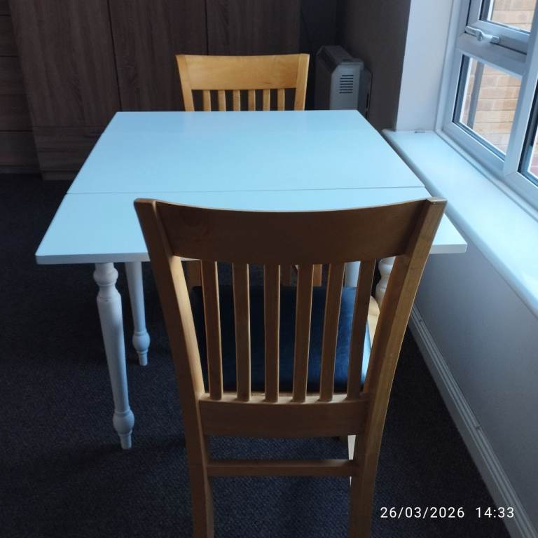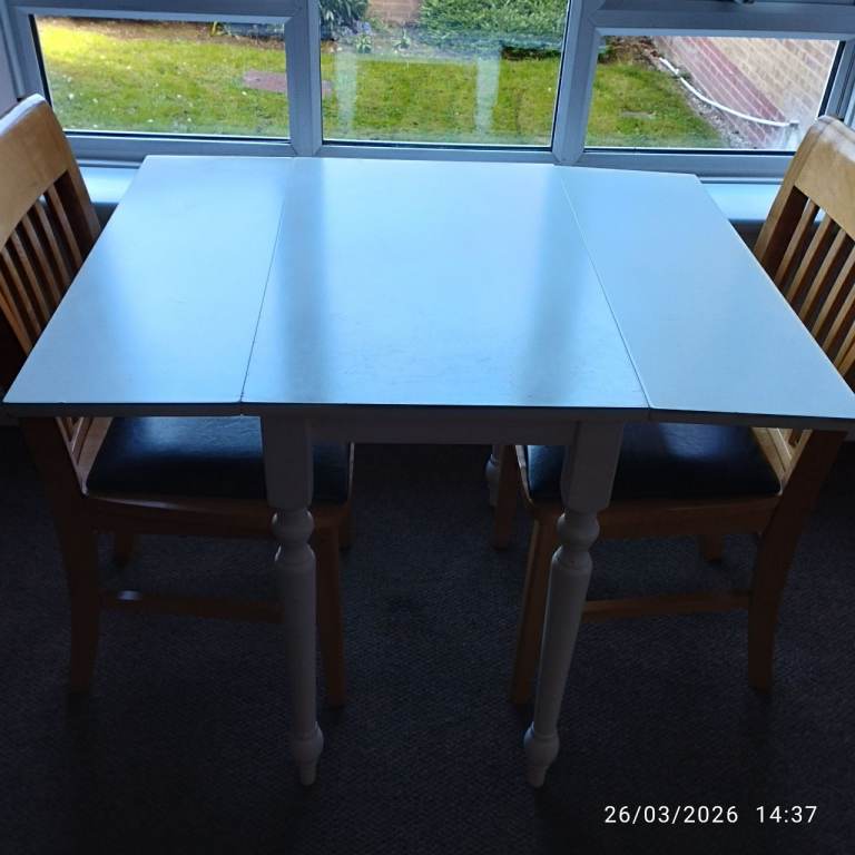 SMALL WOODEN DROP LEAF TABLE AND CHAIRS SET. GOOD CONDITION £45