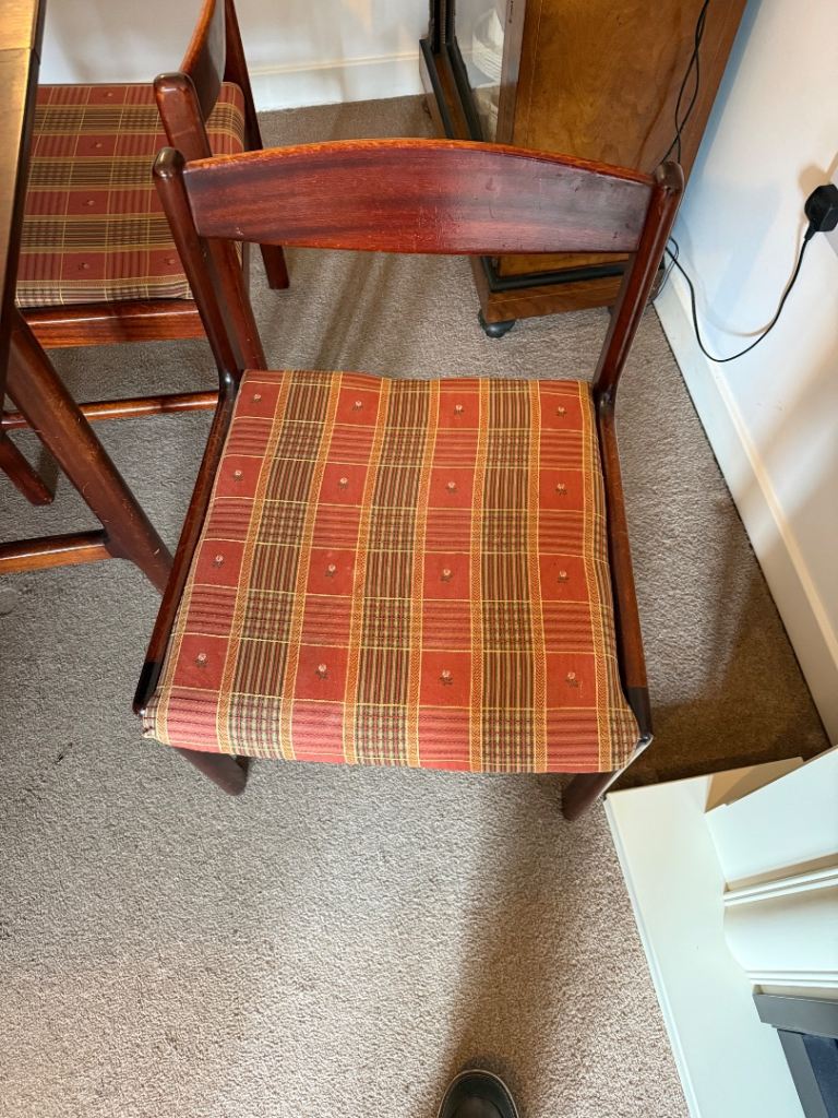 A beautiful mid-century rosewood dining set by McIntosh, showcasing the brand’s renowned craftsmanship and attention to detail. This elegant set includes an extending rectangular table and four matching Model 4023 dining chairs, offering both sophistication and functionality for everyday dining or entertaining.