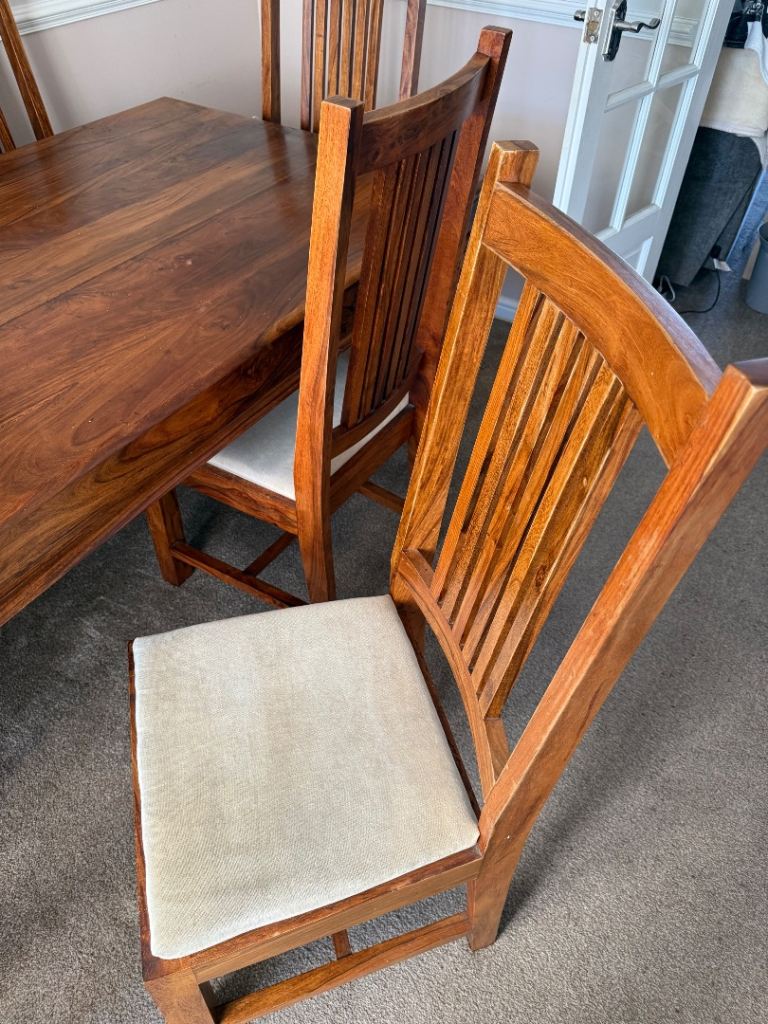 Walnut dining room table and 6 chairs from John Lewis. Few marks and scratches but good condition