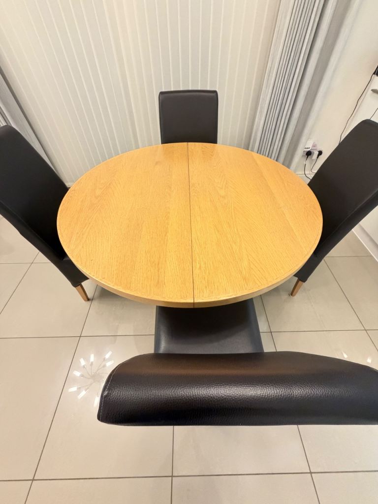Dinning table for £100 in good condition solid wood it can become small and big depending on what you prefer comes with four chairs (pickup only)