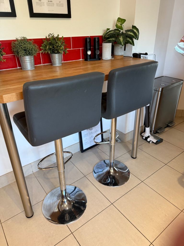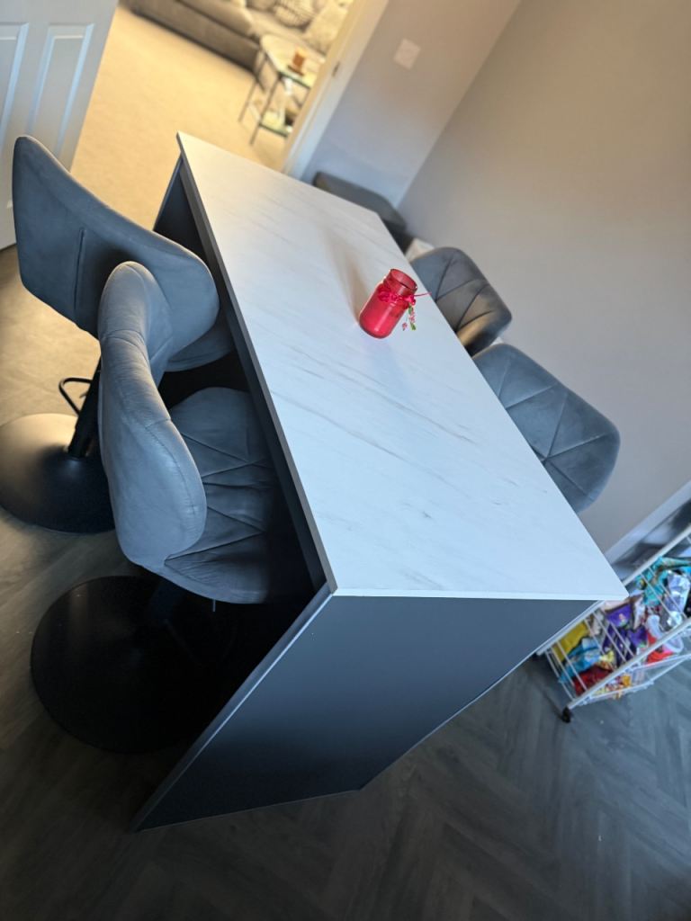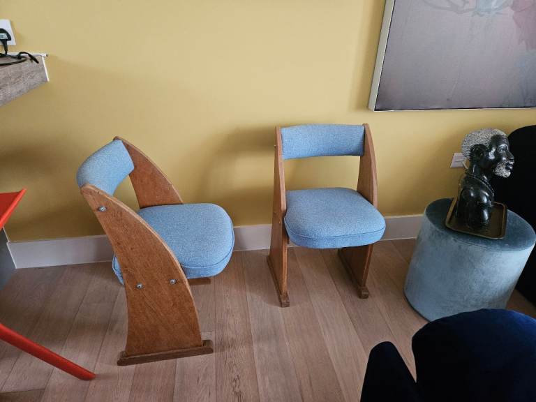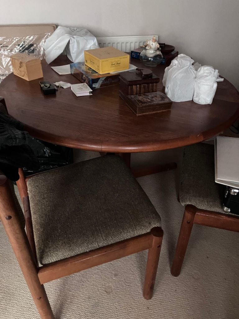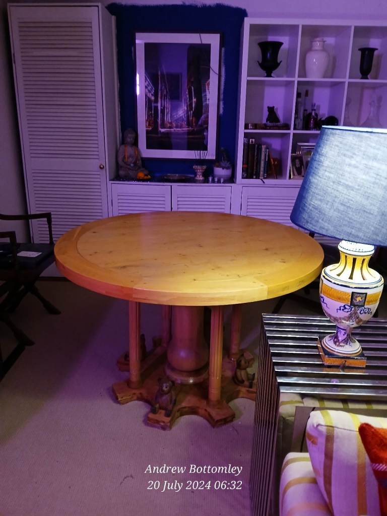 Quirky wooden Teddy Bears ( Mum and threeBespoke Oak Dining table seating upto six. 120cm diameter.