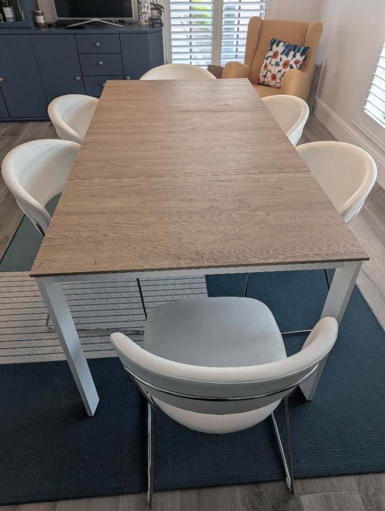 Dining table with pure Oak Top and Base. 120cm diameter and seats 4-6.
