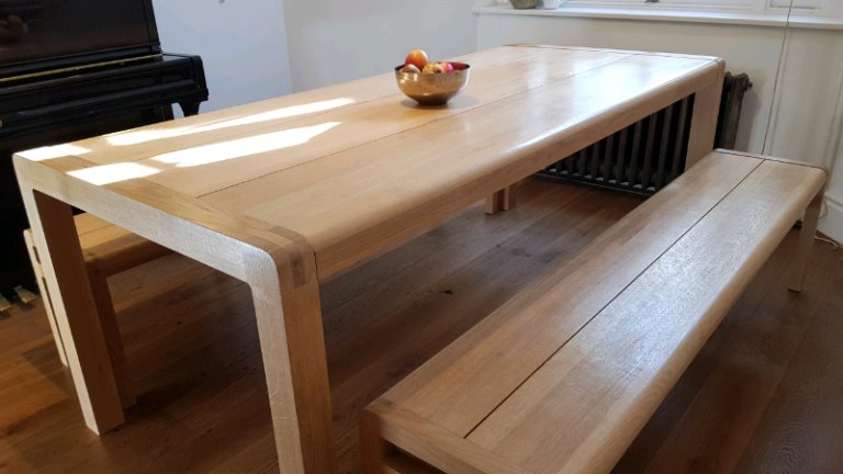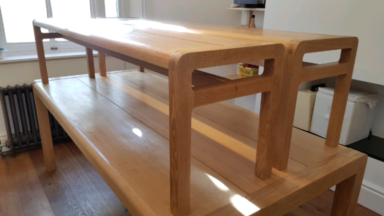 For sale, this pristine example of the Habitat Radius dining Table - seats up to 10 comfortably. Includes two 4-seater matching Habitat Radius benches. In near perfect condition, not a mark to be seen throughout!