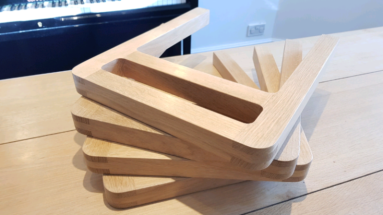 Crafted in Europe from solid oak, it features rounded corners joined with a traditional bridle joint.