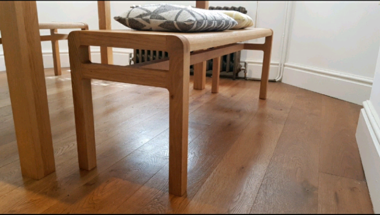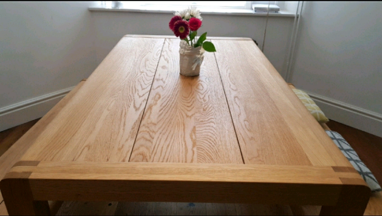 Habitat Radius Solid Oak Dining Table And 2 x Bench Set