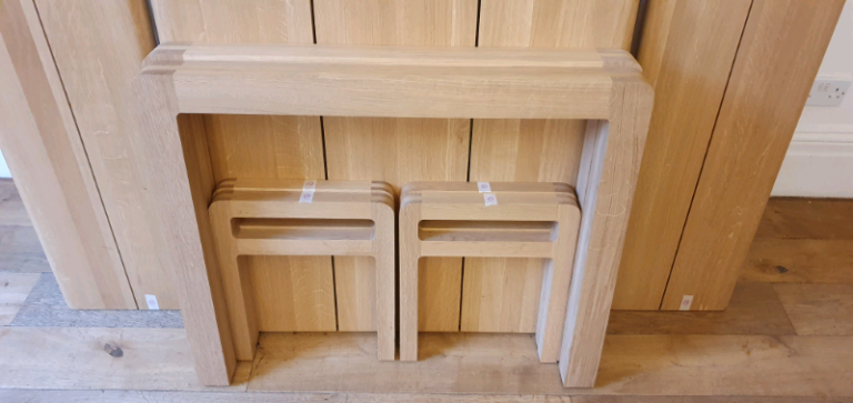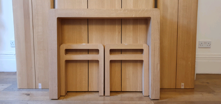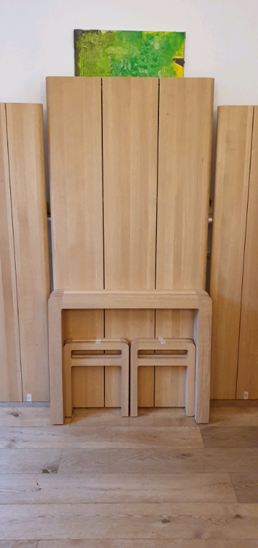 Beautifully and exclusively designed by award winning designer Simon Pengelly for Habitat, this timeless, simple dining set is made out of heavy, solid oak and is in absolutely exceptional condition with barely a mark to be seen throughout all three pieces.