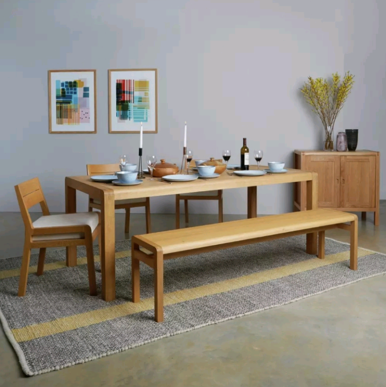 Habitat Radius Solid Oak Large Dining Table and 2 x Bench Set