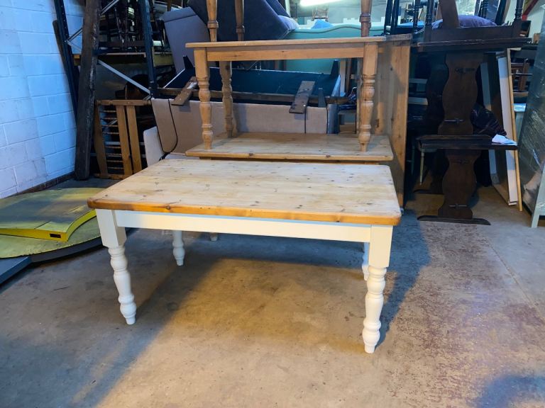 A VICTORIAN/COUNTRY STYLE 4 SEATER BESPOKE SOLID PINE DINING TABLE WITH CUTLERY DRAWER , DELIVERY