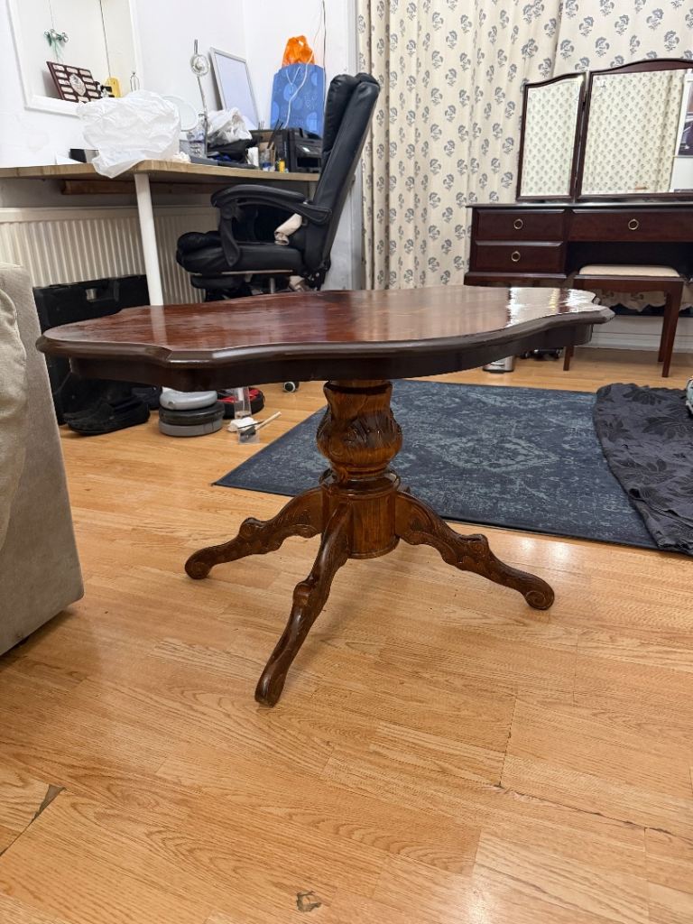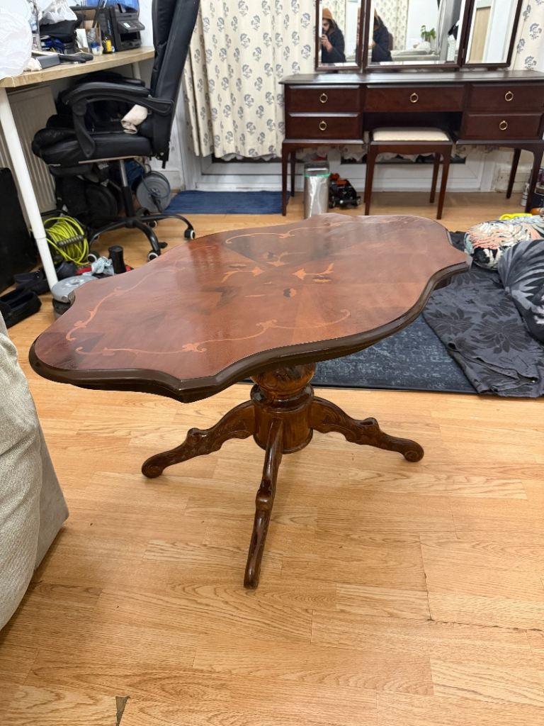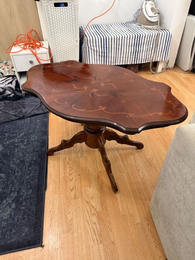 Iām selling a premium Italian Mahogany Coffee Table Rococo Style With Inlaid Detail And Carved Detailed Legs that looks close to new after a full varnish refresh āØ