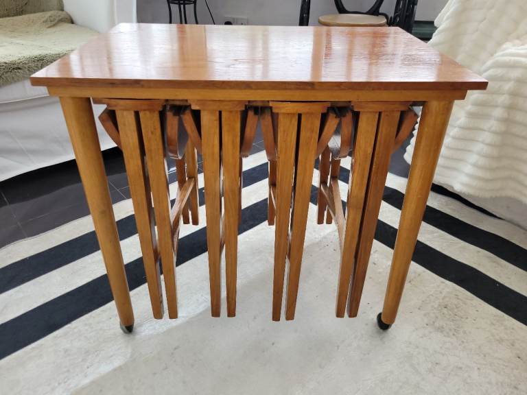 Antique extendable dining table with drop leaf sides. Seats 4 normally and 6 extended. Beautiful mahogany but could do with a re varnish on top. Is approx 100 years old but still sturdy and works great. Crank included.
