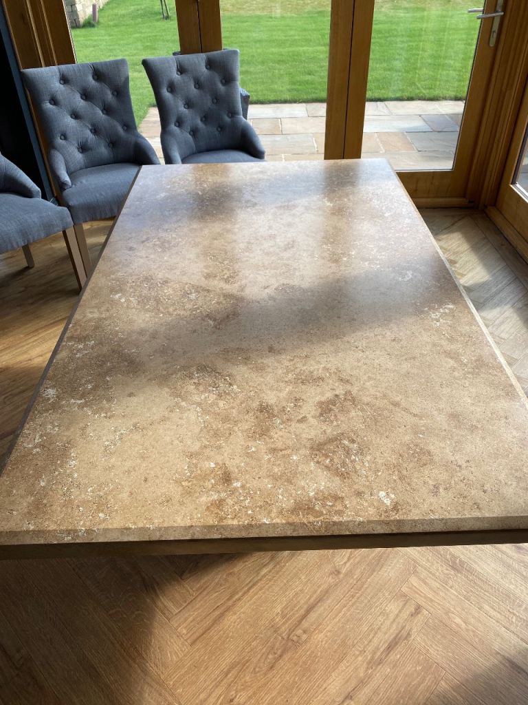 A Barker and Stonehouse Travertine Dining Table bought from the Leeds store.