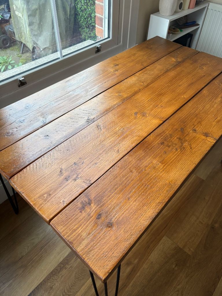 Lovely Oak table, mix of solid and veneer. Small imperfections and scratches but great loved condition.