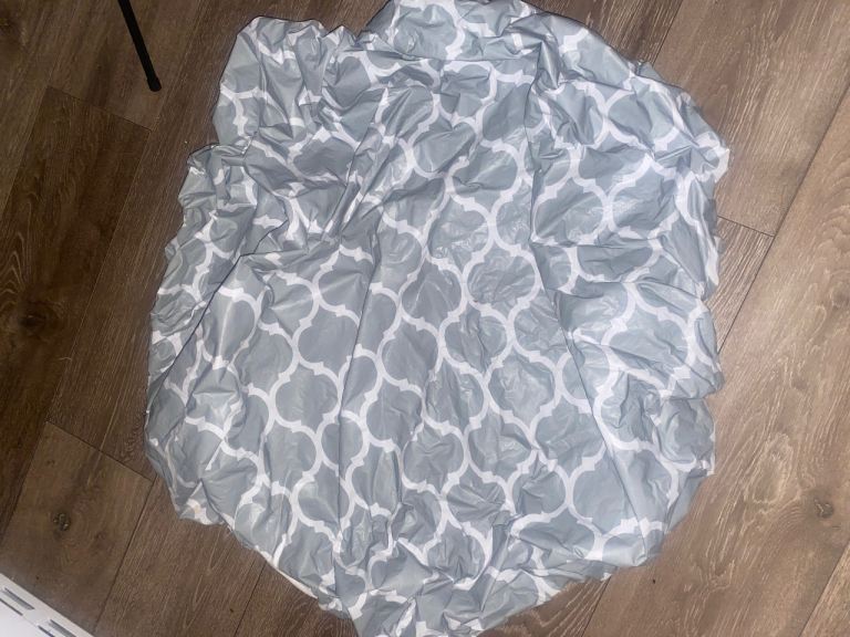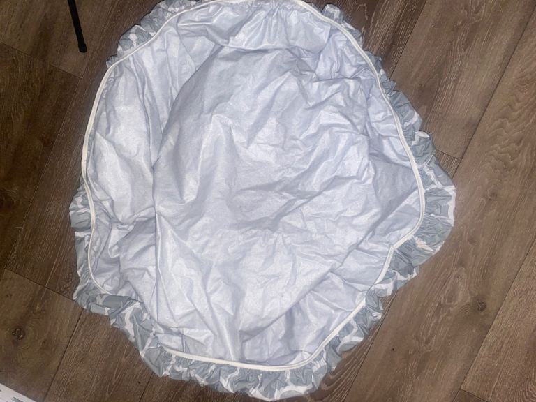 Lovely black dining table set with four matching chairs. Comes with table cover & extends.