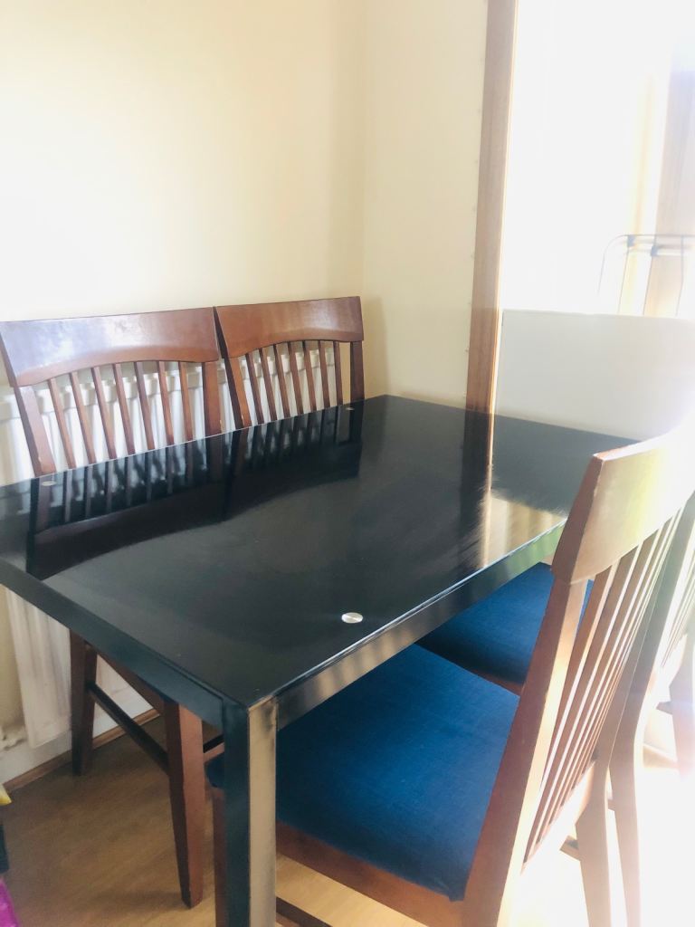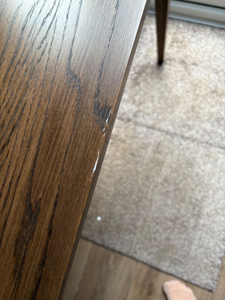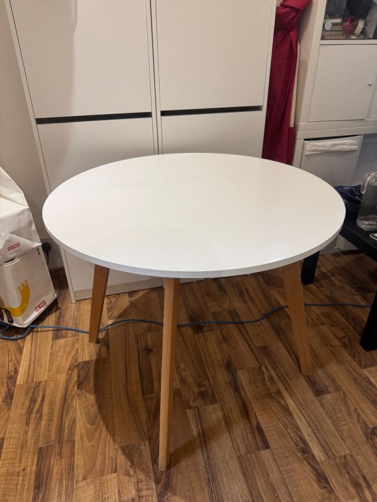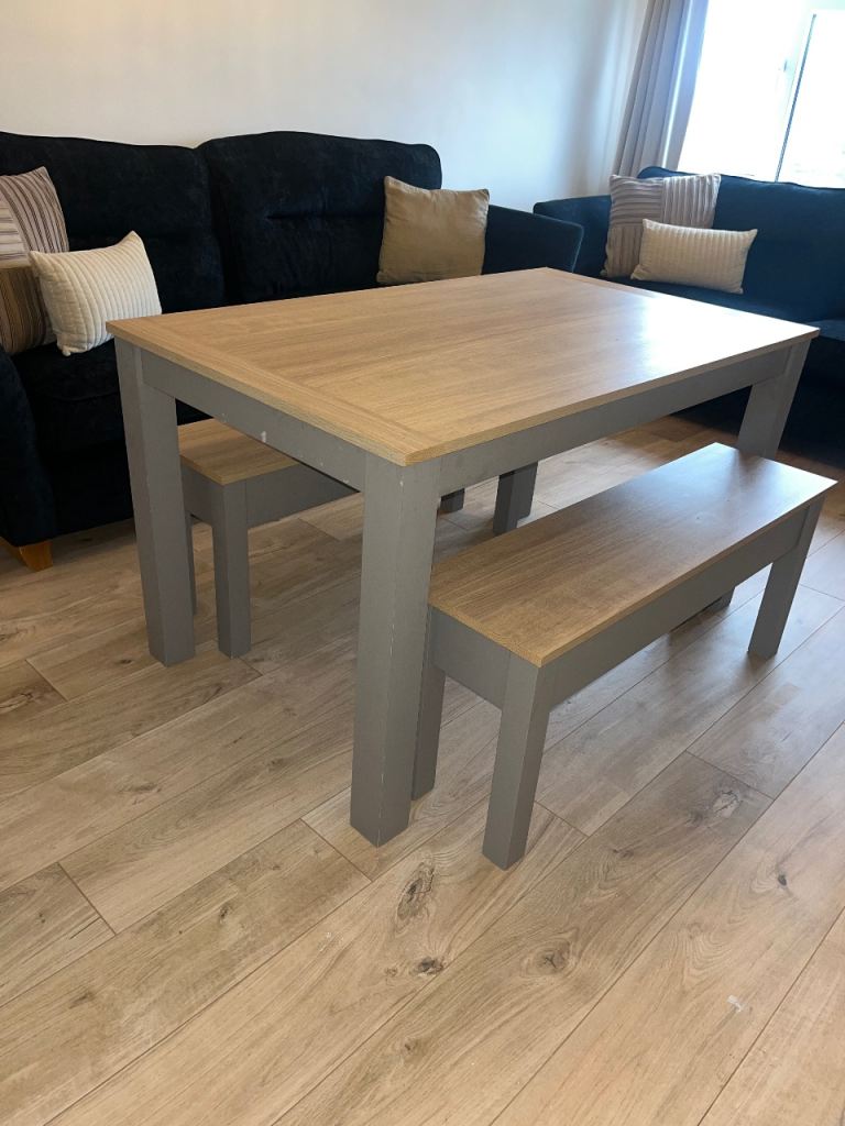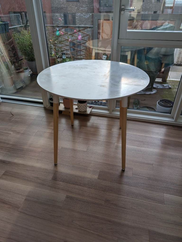 Wooden dining table from Block & Chisel. Purchased for £720. Dimensions: 150x80x75. Good condition aside from a scuff mark and small paint mark, photos included. Collection in West London only